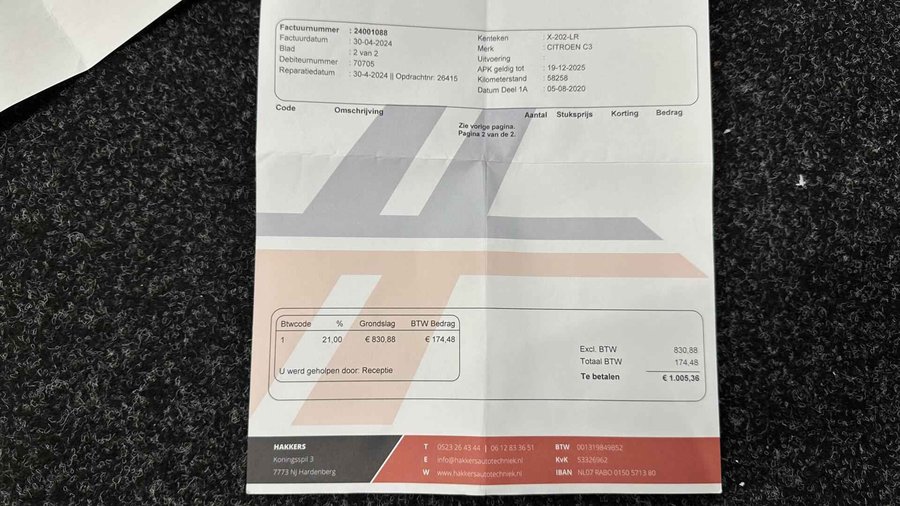 Citroen C3 1.2 PureTech Business PANO TREKHAAK CAMERA STOELVERW NAVI CARPLAY CRUISE LM. - Kenteken: X-202-LR - Merk: Citroen - Model: C3 - APK tot: 19-12-2027 - Tellerstand: 87954 KM - Carrosserievorm: Hatchback - Aantal deuren: 5 - Brandstofsoort: Benzine - Bouwjaar: 2020 - Transmissie: Automaat - Kleur: zwart - Bekleding: Stof - Motorinhoud: 1199 cc - Aantal cilinders: 3 - Motorcode: HN05 - Vermogen: 81 kW / 110pk - Ledig gewicht: 1065 kg - Max. trekgewicht: 450 kg - Aantal zitplaatsen: 5 - Verbruik: 4.7 l/100 km - BTW/Marge: Marge, de BTW is niet aftrekbaar - Lengte: 400 cm - Breedte: 175 cm - Aantal sleutels: 2 - Onderhoudshistorie aanwezig: Ja - Motorrijtuigenbelasting: € 140 - 154 per kwartaal - Emissieklasse: Euro 6 Pakket: Pack City - Dodehoek detectie - Parkeersensor voor Comfort - Boordcomputer - Cruise control - Regensensor Exterieur - Achterruitwisser - Buitenspiegel rechts - Buitenspiegels elektrisch verstelbaar - Buitenspiegels verwarmbaar - Centrale vergrendeling met afstandsbediening - Dimlichten automatisch - Extra getint glas achter - LED dagrijverlichting - LED koplampen - Metaalkleur - Mistlampen voor - Panoramadak - Park Distance Control - Parkeersensor achter - Parkeersensor voor - Trekhaak Infotainment - DAB - Multimedia-voorbereiding - Navigatiesysteem full map - Radio - Spraakbediening - Stuur multifunctioneel Interieur - Achterbank in delen neerklapbaar - Airco automatisch - Bestuurdersstoel in hoogte verstelbaar - Binnenspiegel automatisch dimmend - Elektrische ramen achter - Elektrische ramen voor - Lederen versnellingspook - Microvezel bekleding - Stuur leder - Stuur verstelbaar - Stuurbekrachtiging snelheidsafhankelijk - Voorstoelen verwarmd Milieu - Start/stop systeem Overige - Achteropkomend verkeer waarschuwing - Anti Blokkeer Systeem - Anti doorSlip Regeling - Apple Carplay/Android Auto - Autonomous Emergency Braking - Bestuurdersairbag - Bluetooth - Bots waarschuwing systeem - Brake Assist System - Connected services - Dodehoek detectie - Elektronisch Stabiliteits Programma - Elektronische remkrachtverdeling - Hoofd airbag(s) achter - Hoofd airbag(s) voor - Keyless entry/start - Passagiersairbag - Zij airbag(s) voor Veiligheid - Achteruitrijcamera - Alarm klasse 1(startblokkering) - Bandenspanningscontrolesysteem - Grootlichtassistent - Isofix bevestiging voor kinderzitjes - Verkeersbord detectie - Vermoeidheids herkenning Of u nu naar werk rijdt of een weekendje weg gaat, deze Citroen C3 uit 2020, met slechts 87954 kilometer ervaring, is de perfecte keuze. De benzinemotor levert uitstekende prestaties. De verwarmbare voorstoelen benadrukken nog maar eens dat we hier te maken hebben met een regelrechte verwenauto voor bestuurder en bijrijder. Een heerlijke hoeveelheid daglicht zorgt voor een riant en ruimtelijk effect door het glazen panoramadak. Tot de voorzieningen van deze auto behoren LED koplampen, donker getint glas achter, in delen neerklapbare achterbank en snelheidsafhankelijke stuurbekrachtiging. Ook achter de auto geen verrassingen bij het inparkeren. Daarvoor zorgt de achteruitrijcamera. Gemak dient de mens. Dankzij de spraaksturing bedient u de belangrijkste functie met uw stem. Hoe is het met de banden, de accu en andere onderdelen? Connected Services maakt het inzichtelijk, 24/7 via de app. Ook praktisch: deze auto is voorzien van een eigen full map navigatiesysteem. De achteropkomend verkeer waarschuwing geeft een signaal als degene achter u te dicht op u zit. Ook handig en veilig bij het wisselen van rijbaan. Extra opties op deze auto zijn: automatische airconditioning, DAB ontvangst, regensensor, cruise control, keyless entry en automatisch dimmende binnenspiegel. In de Citroen C3 heeft uw veiligheid en die van uw omgeving prioriteit. De camera van de verkeersborddetectie herkent verschillende soorten verkeersborden en toont deze op het dashboard. Het forward collision warning-systeem is constant alert en detecteert via sensor de afstand tot voorliggers. Wordt die te klein, dan volgt een automatische waarschuwing. Een belangrijke bijdrage aan de veiligheid in deze auto is de vermoeidheidsherkenning, die waarneemt wanneer de bestuurder tekenen van vermoeidheid vertoont. Dankzij veiligheidsvoorzieningen als dodehoekdetectie, brake assist en bandenspanningcontrolesysteem, bent u steeds veilig onderweg. Hebben we u nieuwsgierig gemaakt? Grijp dan uw kans en plan direct online een proefrit. U kunt deze deze auto financieren vanaf €249,00 per maand. Voor meer vragen of informatie kunt u ons altijd bellen mailen of smsen. Kijk ook eens naar onze andere voordelige advertenties. Onze garantie/rijklaar pakketten Instapgarantie (€399,-) Auto's van 10 - 15 jaar oud en tot 175.000 km. Inclusief: 12 maand garantie. Nieuwe APK. Algehele check. Kleine onderhoudsbeurt. Excellent garantie (€499,-) Auto's tot 10 jaar oud en tot 175.000 km. Inclusief: 12 maand garantie. Nieuwe APK. Algehele check. Kleine onderhoudsbeurt. Excellent plus garantie (€699,-) Auto's tot 10 jaar oud en tot 175.000 km. Inclusief: 12 maand garantie. Nieuwe APK. Algehele check. Grote onderhoudsbeurt. Exclusive garantie (€1499,-) Speciaal voor onze exclusives. Auto's tot 10 jaar oud en tot 175.000 km. Inclusief: 12 maand garantie Nieuwe APK. Algehele check Inclusief onderhoudsbeurt. Onze advertenties worden met grote zorgvuldigheid op het internet geplaatst. Mocht er onverhoopt toch een fout in staan, dan kan hieraan geen rechten worden ontleend.  Financiering is mogelijk. Whatsapp ons op:  06-552 318 32 RTO autoservice Zuiderdiep 408 7876 AW Valthermond 0599 72 70 12 info@rtoautoservice.nl www.rtoautoservice.nl/