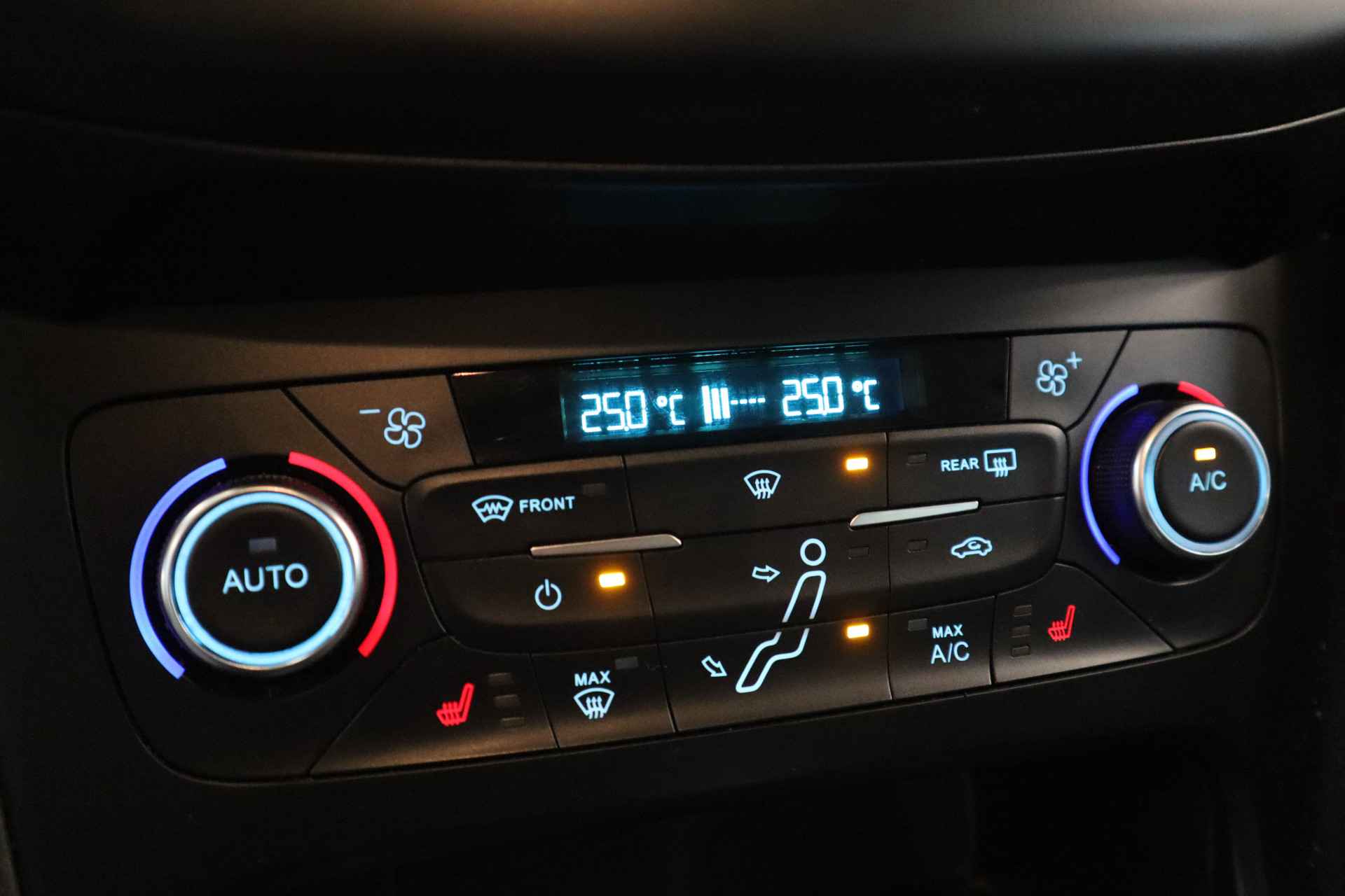 U ziet het meteen aan zijn krachtige design, de Ford Focus is een auto die kwaliteit uitstraalt. Onderhuids vindt u die kwaliteit terug in de geavanceerde techniek, die deze auto zijn sportieve rijeigenschappen geeft. In deze auto vindt u een benzinemotor en een handgeschakelde zesversnellingsbak. Sportief rijden stelt eisen aan een stevige zitpositie voor rijder en bijrijder. Vandaar de strakke sportstoelen! Bij de rijke uitrusting horen ook 18 inch lichtmetalen velgen en donker getint glas achter. Naast de routeinformatie van het full map navigatiesysteem kunt u muziek via het audio-installatiesysteem ook online beluisteren via bluetooth. De meeste schade bij inparkeren komt van een randje of paaltje dat u even niet zag. Maar de parkeersensoren zien alles en waarschuwen op tijd. Met ingeschakelde cruise control zit u ontspannen achter het stuur. In een auto als deze mag u ook airconditioning verwachten. De Ford is standaard voorzien van: dashboard met spraakbediening, centrale deurvergrendeling met afstandsbediening, boordcomputer en verstelbaar stuur. Zoals u mag verwachten van deze Ford Focus is hij uitgerust met een reeks aan actieve veiligheidssystemen. Door de hill hold control is geen helling meer een probleem om stil te staan. Als u meer wilt weten over deze Ford, dan vertellen we u dat graag. Belt of mailt u ons vandaag nog?