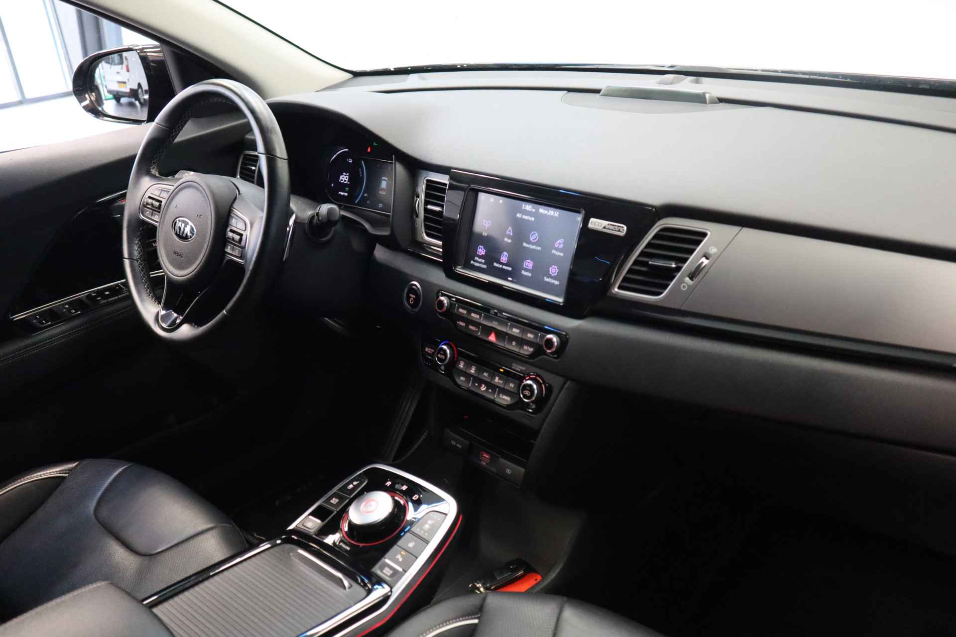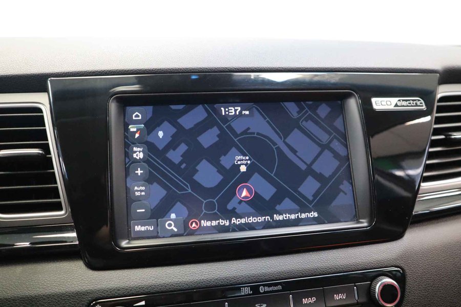 Duurzaam en dynamisch, de Kia e-Niro verenigt deze twee uitersten in zich. Dit is een auto uit 2020, er staat 71676 kilometer op de teller. Geruisloos genieten tegen lage kosten? Dan is deze elektromotor iets voor u! De krachtige motor geeft deze Kia uitstekende prestaties. Lederen bekleding is in deze rijk uitgeruste auto ook aanwezig. De verwarmbare voorstoelen benadrukken nog maar eens dat we hier te maken hebben met een regelrechte verwenauto voor bestuurder en bijrijder. De verwarmde achterbank is een luxe extra, speciaal voor de passagiers. Ook 17 inch lichtmetalen velgen, LED koplampen, donker getint glas achter, LED-achterlichten en verstelbare lendensteunen zijn aan boord. Zelfs een kleine aanrijding kan flinke kosten veroorzaken. Gelukkig laat de achteruitrijcamera precies zien wat er zich achter de auto bevindt en geeft een waarschuwingssignaal. Adaptive cruise control houdt de ingestelde snelheid vast en houdt afstand tot het voertuig voor u. Het high performance audiosysteem produceert krachtige bassen en heldere hoge tonen. Nooit meer de weg zoeken en ontspannen arriveren bij uw reisdoel. Met het full map navigatiesysteem zit u veilig en ontspannen in de auto. Bij de luxe van deze auto hoort ook electronic climate control. Ook schakelpaddles aan het stuur, draadloos opladen, DAB ontvangst, regensensor, keyless entry en automatisch dimmende binnenspiegel horen tot de voorzieningen op deze auto. Zoals u mag verwachten van deze Kia e-Niro is hij uitgerust met een reeks aan actieve veiligheidssystemen. Een camera houdt de juiste koers binnen de rijstrook in de gaten en het Lane-keeping systeem corrigeert bij afwijkingen. Mindert een voorligger onverwachts te veel vaart, dan komt de forward collision warning in actie en waarschuwt meteen. Op lange ritten voorkomt de vermoeidheidsassistent dat uw concentratie afneemt. Dankzij veiligheidsvoorzieningen als dodehoekdetectie, hill hold functie, autonoom remsysteem en bandenspanningcontrolesysteem, bent u steeds veilig onderweg. Met het bijgeleverde tellerrapport van Nationale Autopas weet u dat de kilometerstand van deze auto zuiver is. Ook stil genieten van elektrisch rijden? Maak een afspraak voor een proefrit!