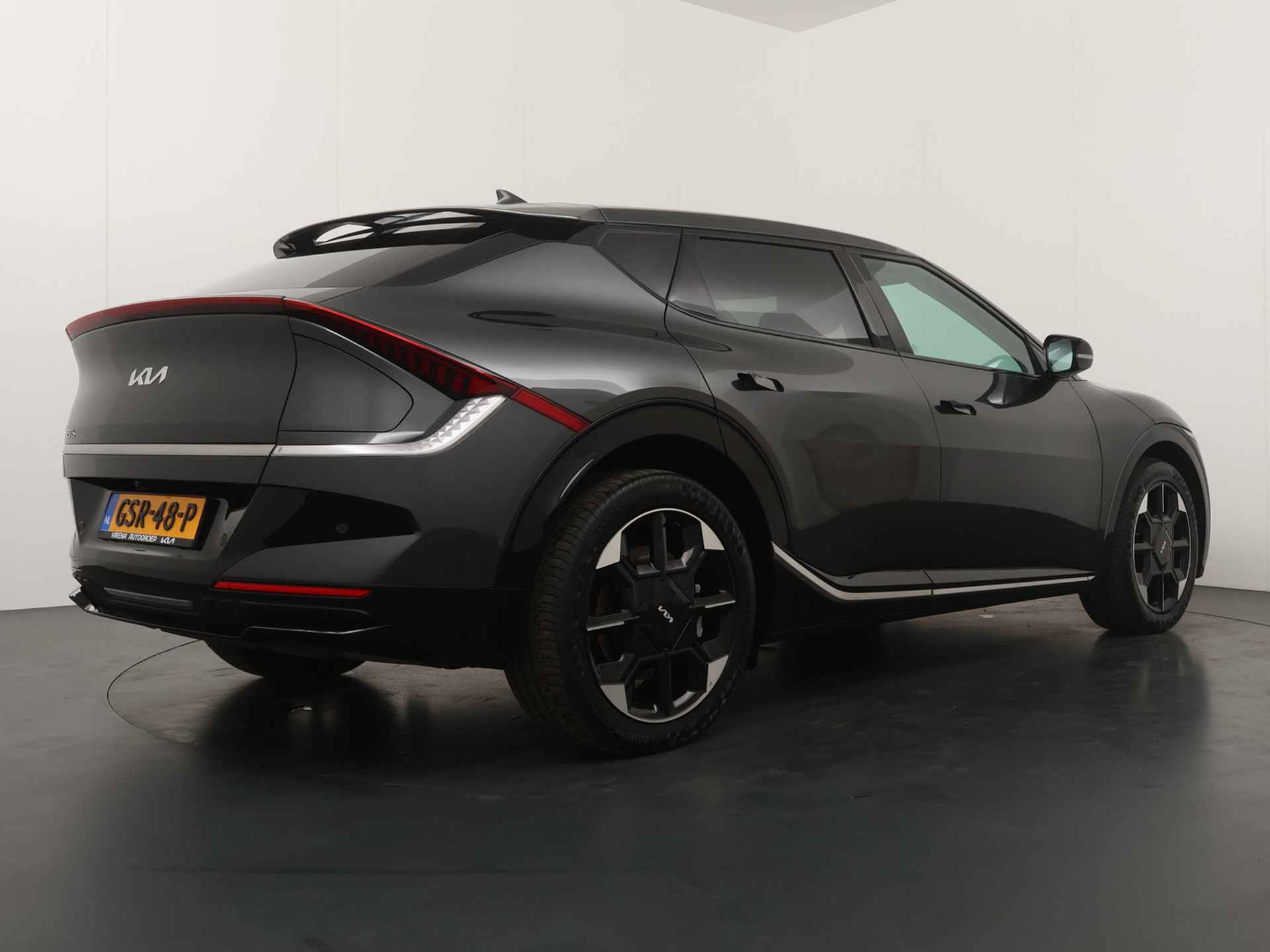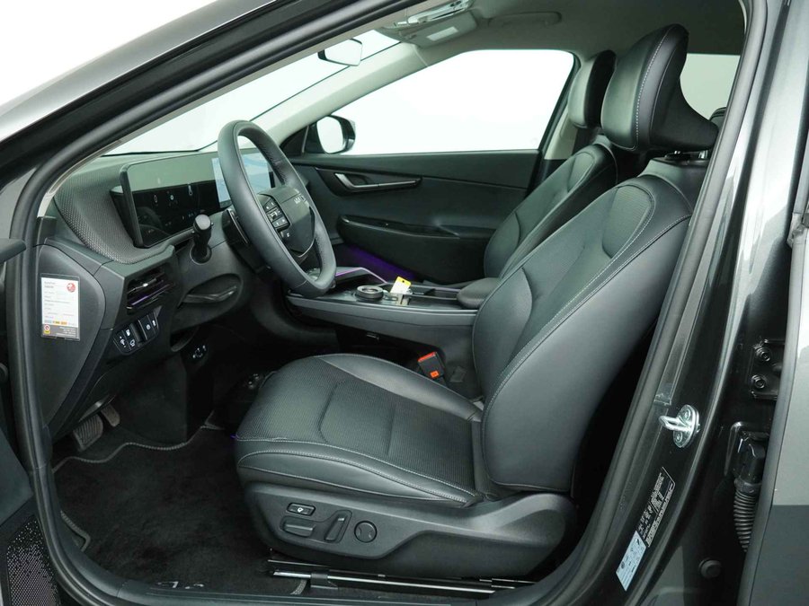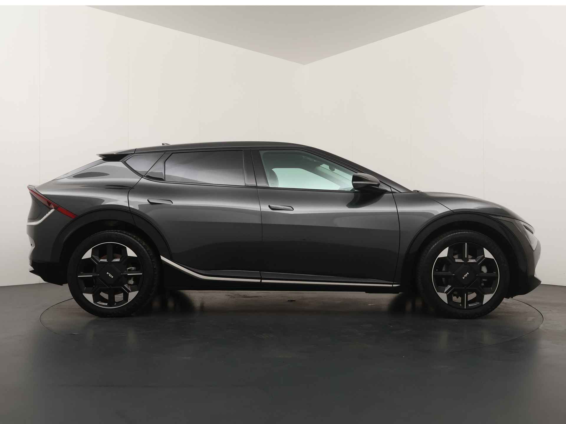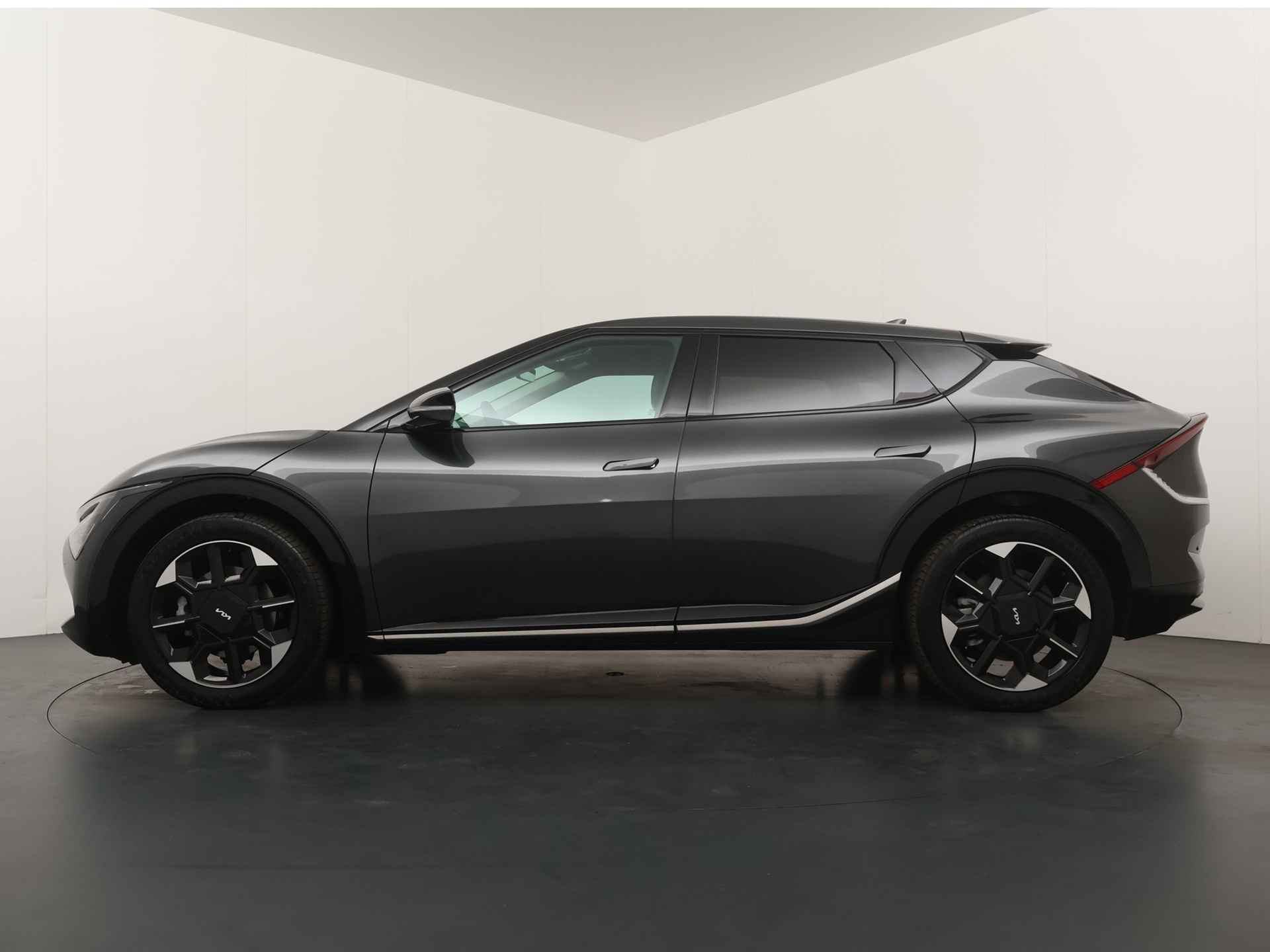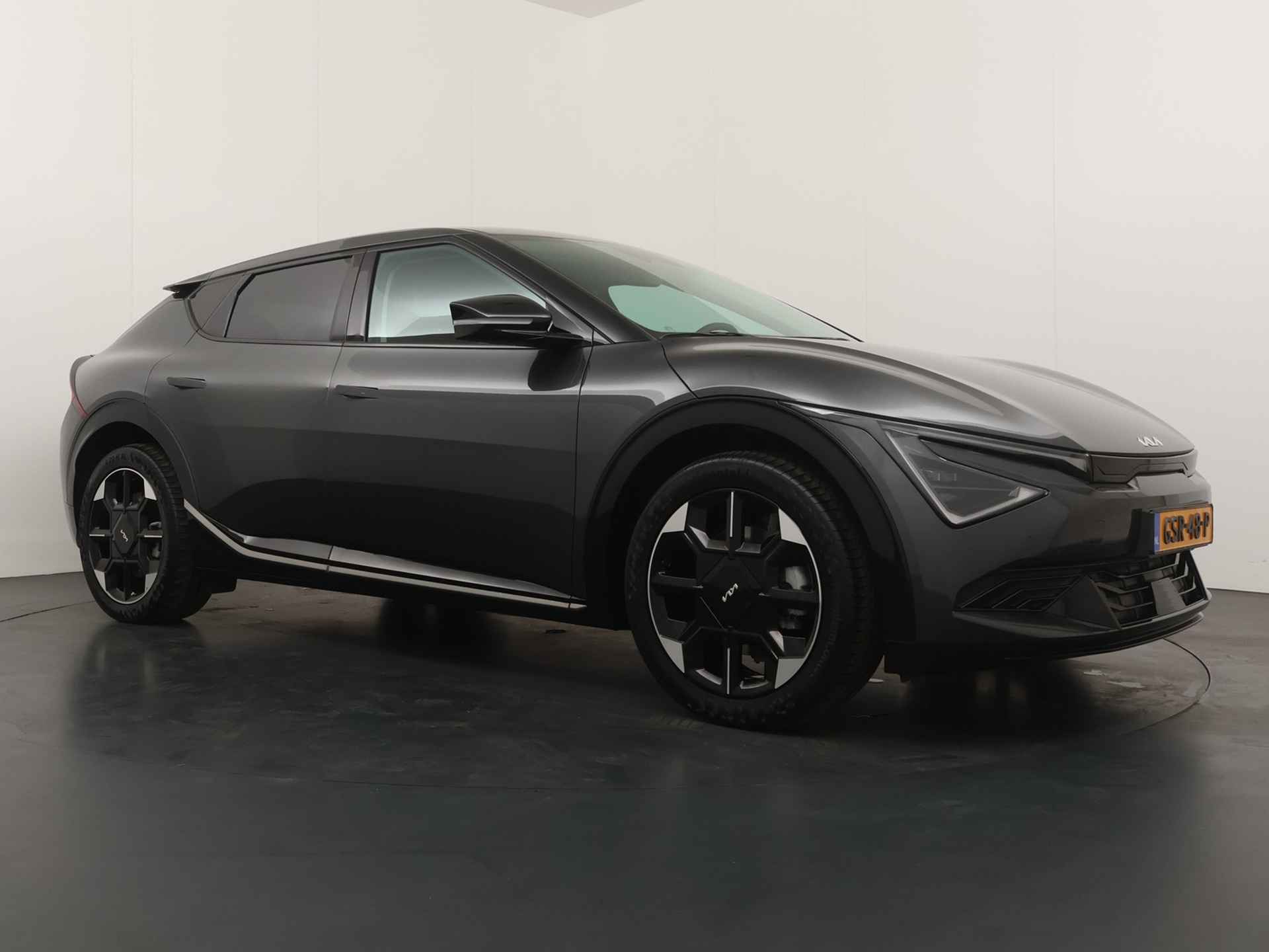 Elektrisch vermogen of onderscheidend vermogen? De Kia EV6 heeft het allebei in overvloed. De prestaties van de elektromotor kunnen de vergelijking met een brandstofmotor moeiteloos aan. Een krachtige motor geeft deze auto zijn sportieve prestaties. U zit er altijd warmpjes bij door de stoelverwarming. De bagageruimte is toegankelijk via een comfortverhogende elektrische achterklep. Deze Kia EV6 is niet zuinig met comfort. Wat dacht u van een verwarmde achterbank? De verlichting van de koplampen geeft het gevoel dat het altijd dag is. De slimme matrix LED-technologie past zich aan bij tegenliggers, zonder verlies van lichtkwaliteit. U wordt in deze auto ook getrakteerd op 20 inch lichtmetalen velgen, warmtewerend glas, in delen neerklapbare achterbank, LED-achterlichten en verstelbare lendensteunen. Het digitale dashboard is qua lay-out en zichtbaarheid superslim ingedeeld. Alle functies in één keer in beeld! Een vergeten muurtje, een verborgen paaltje? Dat gebeurt niet meer, dankzij de achteruitrijcamera. Adaptive cruise control is veilig en comfortabel. De snelheidsregelaar houdt automatisch afstand tot het voertuig dat voor u rijdt. De file assistent verzacht het fileleed door automatisch veilig afstand te houden tot de voorligger en zo nodig zelfs te stoppen als de rij tot stilstand komt. Naast handmatige bediening kunt u belangrijke functies met uw stem bedienen dankzij de ingebouwde spraakbediening. Wat u ook in deze auto kunt vinden zijn connected drive services, full map navigatiesysteem, electronic climate control, draadloos opladen, regensensor en keyless entry. U geniet nog meer van het rijden met uw Kia omdat u wordt beschermd door intelligente veiligheidssystemen. U rijdt ook veiliger omdat deze auto voor u de verkeersborden langs de weg kan lezen. De belangrijkste borden worden op uw instrumentarium geprojecteerd, zodat u ze niet kunt missen. Een camera houdt de juiste koers binnen de rijstrook in de gaten en het Lane-keeping systeem corrigeert bij afwijkingen. Actieve dodehoekdetectie geeft een waarschuwingssignaal wanneer een ander voertuig in uw dode hoek rijdt. Dit verkleint de kans op een aanrijding. U bent mede dankzij forward collision warning system, hill hold functie, vermoeidheidsherkenning, autonoom remsysteem en bandenspanningcontrolesysteem steeds veilig onderweg. The future is now, rij elektrisch! Maak een afspraak voor een proefrit.