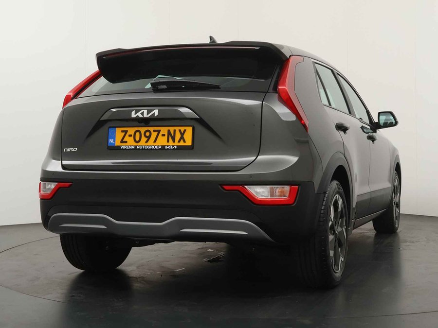 Intelligente technologie. Geen emissies en een fantastisch rijgedrag. Welkom in de Kia Niro EV. Geruisloos genieten tegen lage kosten? Dan is deze elektromotor iets voor u! Een krachtige motor geeft deze auto zijn sportieve prestaties. Bij de zeer complete uitrusting van deze auto behoren ook 17 inch lichtmetalen velgen, LED-dagrijverlichting, in hoogte verstelbare passagiersstoel, in delen neerklapbare achterbank en LED-achterlichten. Alle ritinformatie en communicatie is gebundeld in één overzichtelijk digitale dashboard. Parkeer en kijk niet om! De achteruitrijcamera doet dat voor u. Adaptive cruise control houdt de ingestelde snelheid vast en houdt automatisch afstand tot uw voorligger. Rijden-stilstaan, rijden-stilstaan. Niks is irritanter en vermoeiender dan filerijden. Daar heeft deze Kia Niro EV een oplossing voor: de file assistent, die met radarmeting permanent het tempo aanpast op de voorligger. Zelfs als die stopt. Connected Services voegt nog meer comfort en veiligheid toe aan deze auto. De Kia is standaard voorzien van: dashboard met spraakbediening, full map navigatiesysteem, kruisend verkeer detectie, automatische airconditioning, sportstuur met schakelpaddels en DAB ontvangst. De Kia Niro EV is uw trouwe partner onderweg, want hij houdt continu voor u de situatie op en om de weg in de gaten. Volautomatische veiligheidssystemen kunnen daarbij ingrijpen om u voor gevaarlijke situaties te behoeden. Een belangrijke bijdrage aan de veiligheid onderweg levert de verkeersbord-detectie in deze Kia. Een camera houdt de juiste koers binnen de rijstrook in de gaten en het Lane-keeping systeem corrigeert bij afwijkingen. Op een kop-staartbotsing zit niemand te wachten. Daarom is de forward collision warning onderweg constant alert en berekent via een sensor de veilige afstand tot voorliggers. Verder is deze auto uitgerust met hill hold functie, vermoeidheidsherkenning, autonoom remsysteem en bandenspanningcontrolesysteem. Elektrisch rijden is een verademing. Eén belletje is genoeg voor een proefrit. Wanneer zullen we 'm klaarzetten?