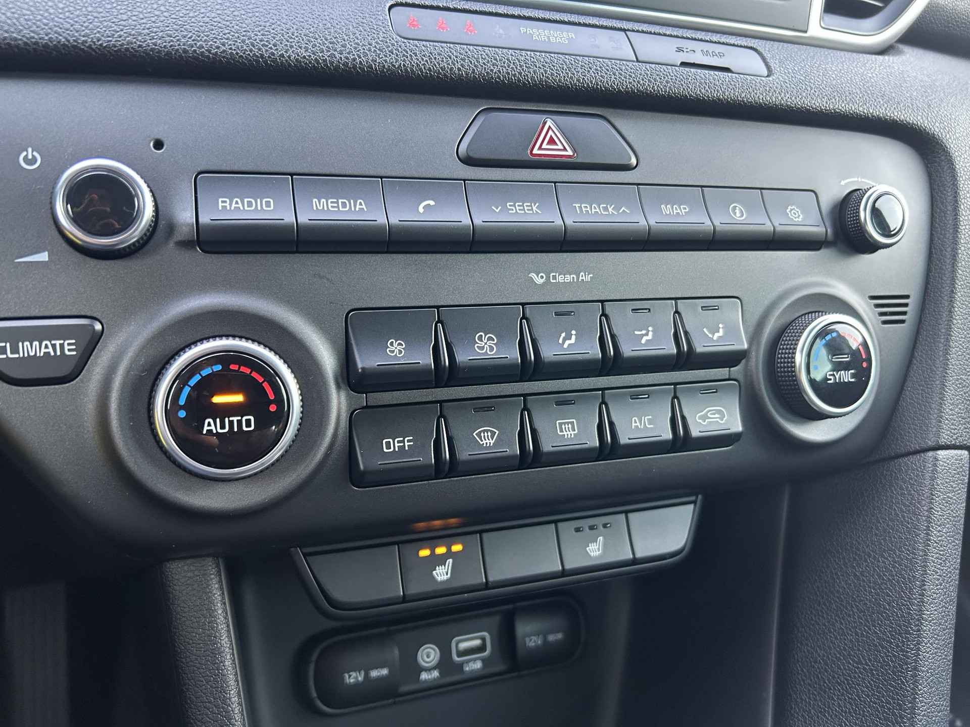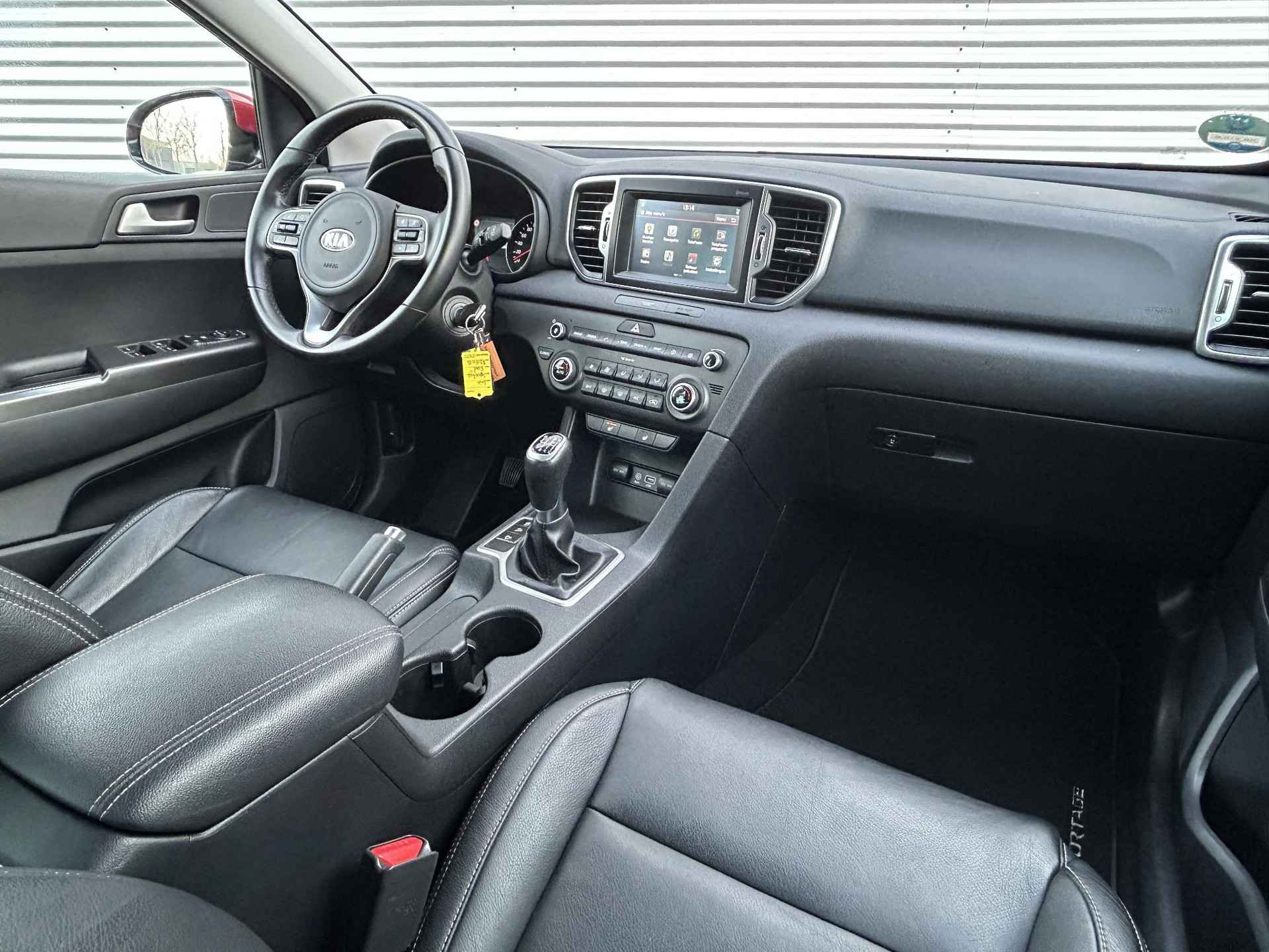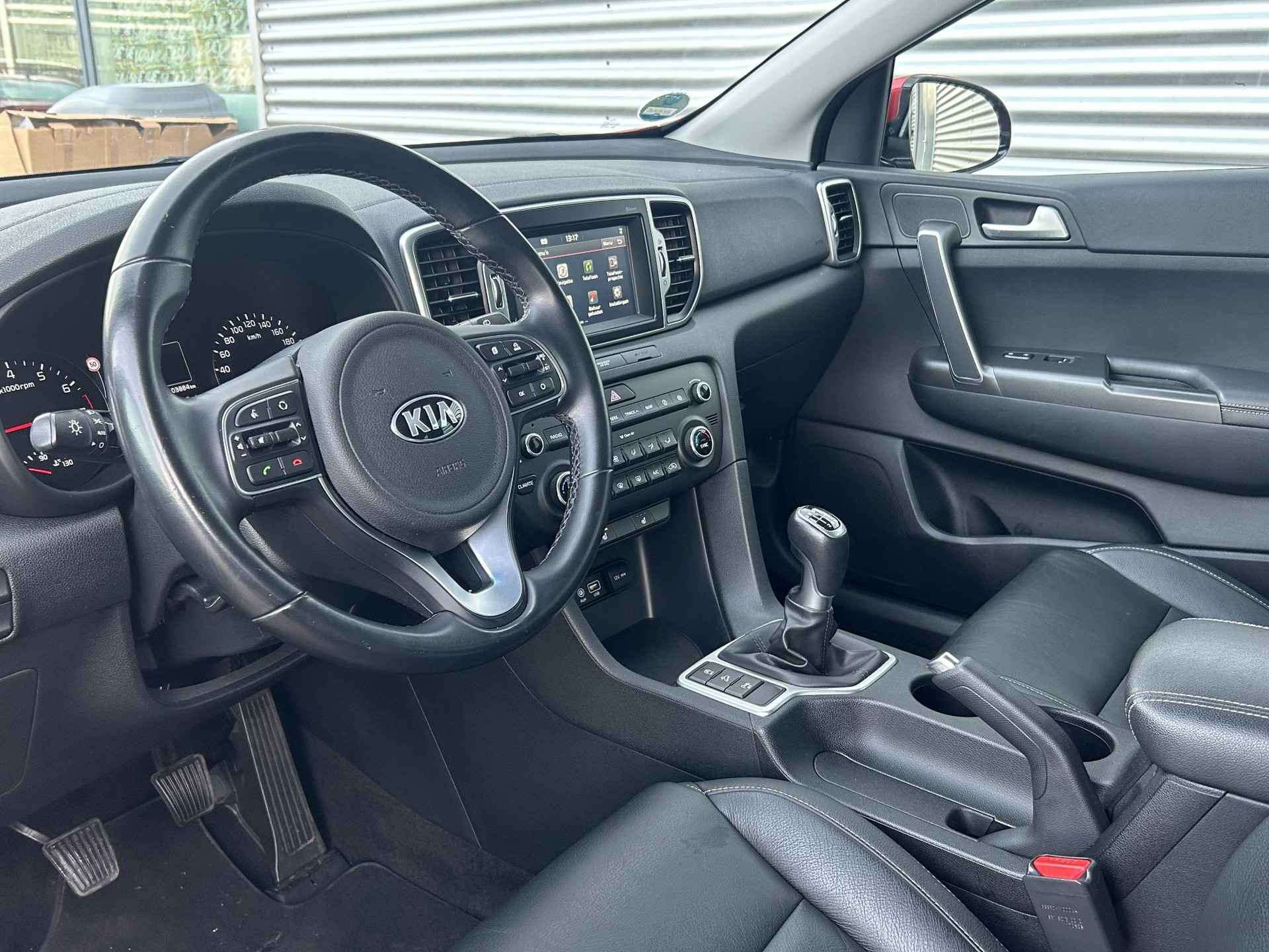 Kia heeft een breed aanbod van modellen in verschillende prijsklassen en is daarmee een topfavoriet. Movement that inspires. In deze auto vindt u een benzinemotor en een handgeschakelde zesversnellingsbak. Verder is de Kia uitgerust met: 17 inch lichtmetalen velgen, LED-dagrijverlichting, trailer assistent, extra getint glas, in delen neerklapbare achterbank en LED-achterlichten. Een vergeten muurtje, een verborgen paaltje? Dat gebeurt niet meer, dankzij de achteruitrijcamera. Vergeten af te sluiten? Bandenspanning onvoldoende? De speciale app geeft u direct een seintje met behulp van Connected Services. De kortste weg, de zuinigste weg, de snelste weg... elke weg is te vinden met het full map navigatiesysteem. In een auto als deze kunt u niet zonder electronic climate control, zodat de temperatuur altijd goed is. Op het stuur bevinden zich ook de schakelaars waarmee u de audio bedient. Natuurlijk behoren DAB ontvangst, regensensor, cruise control, automatisch dimmende binnenspiegel, lederen stuur en versnellingspook en centrale deurvergrendeling met afstandsbediening ook tot de uitrusting van deze complete auto. De nieuwste veiligheidssystemen komen in deze Kia Sportage samen. Verkeersborddetectie herkent tijdelijke en permanente verkeersborden langs en boven de weg. Met het Lane-keeping systeem komt u nooit per ongeluk buiten de rijstrook. In deze Kia vinden we verder een hill hold functie en bandenspanningcontrolesysteem. Indien u interesse heeft in deze Kia, zetten we hem graag klaar voor een proefrit. We horen graag van u, mailt of belt u ons meteen? Is deze auto iets voor u? Genoemde prijs is een basisprijs. Wij informeren u graag welke garantie en onderhoudspakketten er op deze auto mogelijk zijn, of kijk ook op Knoop-mazda.nl. U bent van harte welkom voor een vrijblijvende nadere kennismaking. Pakket 1:  495,- - 12 maanden wettelijke garantie - Volledig reinigen van in- en exterieur - Voorzien van minimaal 12 maanden APK - Vloeistoffen check Pakket 2:  895,-  - 12 maanden BOVAG garantie - Volledig reinigen van in- en exterieur - Voorzien van minimaal 12 maanden APK - Onderhoudsbeurt volgens schema - Levenslange pechhulp voor jouw Mazda bij onderhoud via de Mazda Dealer  - 20 liter brandstof.  - Napoetsen voor aflevering