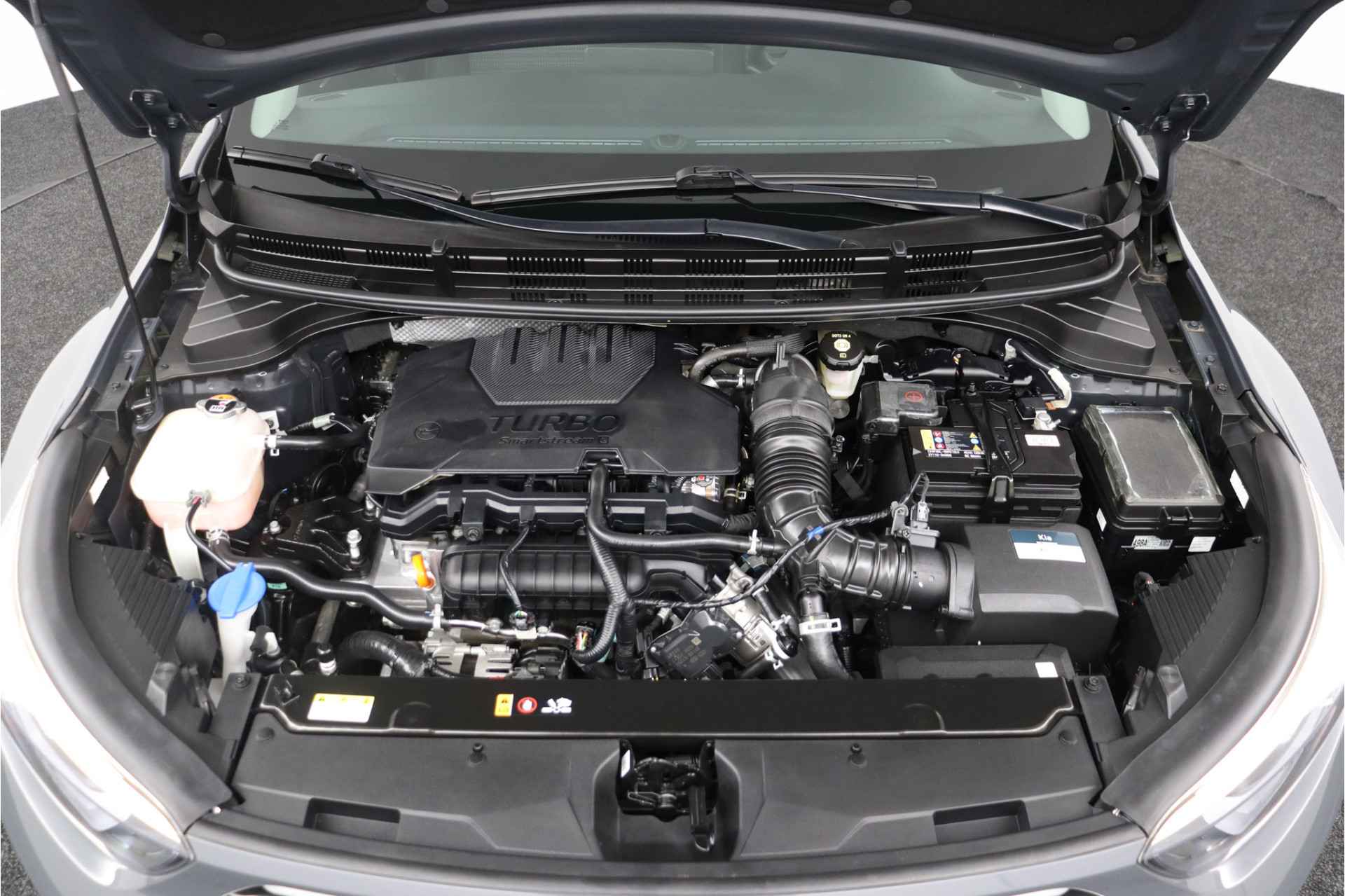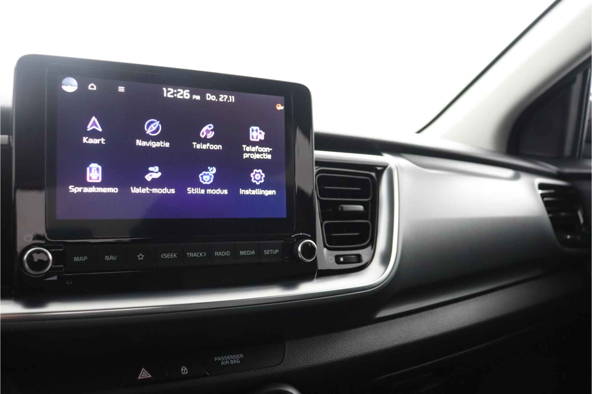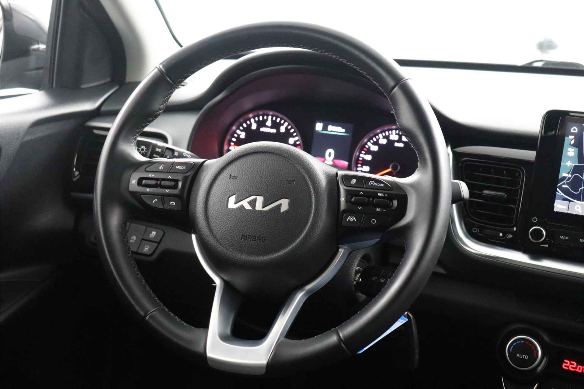 Kijk naar het design, de keuze in modellen en natuurlijk de gunstige prijsstelling. Dan weet u: Kia, Movement that inspires. Een benzinemotor en een handgeschakelde zesversnellingsbak zorgen dat u met deze SUV prima vooruitkomt. Bij de zeer complete uitrusting van deze auto behoren ook 15 inch lichtmetalen velgen, adaptieve verlichting, in hoogte verstelbare passagiersstoel en in delen neerklapbare achterbank. De achteruitrijcamera brengt precies in zicht wat zich achter u bevindt en toont een glashelder beeld op hoge resolutie. Een geluidssignaal waarschuwt hoeveel ruimte u nog heeft. Harder en zachter met een druk op de knop: de audiobediening op het stuurwiel maakt het mogelijk. Met de DAB-ontvanger heeft u keuze uit talloze digitale radiozenders met de allerhoogste geluidskwaliteit. Met cruise control rijdt u rustiger en meer ontspannen, en bovendien zuiniger. In deze auto kiest u zelf uw ideale temperatuur dankzij de airconditioning. Wat u ook in deze auto kunt vinden zijn centrale deurvergrendeling met afstandsbediening en verstelbaar stuur. Pragmatisch en veilig als deze auto is, beschikt hij over diverse veiligheidssystemen. Met het Lane-keeping systeem komt u nooit per ongeluk buiten de rijstrook. Ook is deze auto uitgerust met een systeem dat u waarschuwt wanneer u achter het stuur in slaap dreigt te vallen. Bovenop deze veiligheidsfeatures heeft deze Kia bovendien hill hold functie, autonoom remsysteem en bandenspanningcontrolesysteem. Dat de kilometerstand in orde is, blijkt uit het meegeleverde tellerrapport van Nationale Autopas. We doen ons best om deze auto voor u te omschrijven, maar het beste ervaart u hem als hij voor u staat. Neemt u snel contact met ons op voor een afspraak?