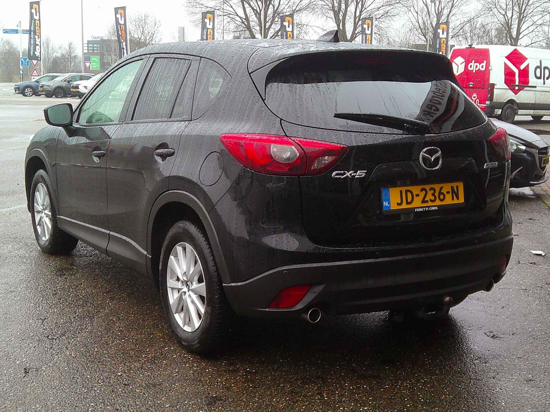Bij het ontwerpen van de Mazda CX-5 stonden uw comfort en uw veiligheid centraal. Een krachtige viercilinder dieselmotor en een prettige handgeschakelde zesversnellingsbak zorgen voor de aandrijving van deze stoere Mazda. Binnenin zien we een fraai afgewerkt lederen interieur. Koude start? Niet met de verwarmbare voorstoelen! Tot de uitrusting behoren ook 17 inch lichtmetalen velgen, LED koplampen, donker getint glas achter, LED-achterlichten en verstelbare lendensteunen. Smakelijke subs en knisperend hoog: het high performance audiosysteem geeft elke frequentie een kwaliteitsbehandeling voor akoestisch genieten onderweg. Met de electronic climate control selecteert u de gewenste temperatuur. Het systeem doet de rest. Boem is ho? Niet bij deze Mazda CX-5. De piepjes van de parkeersensoren waarschuwen u op tijd voor obstakels. Het drukke verkeer eist onderweg al uw aandacht op. Daarom is het goed dat deze Mazda is voorzien van diverse systemen die u assisteren tijdens de rit. Een automatisch inschakelbare verlichting neemt het waar als het donker wordt of gaat schemeren, en schakelt dan automatisch de verlichting in. Op dezelfde manier "ziet" de regensensor de eerste spatjes regen en schakelt dan de ruitenwissers in, en als het harder gaat regenen zet hij de ruitenwissers ook in een snellere stand. Met ingeschakelde cruise control zit u ontspannen achter het stuur. En dan is deze auto ook nog eens voorzien van full map navigatiesysteem, DAB ontvangst, keyless entry, automatisch dimmende binnenspiegel, lederen stuur en centrale deurvergrendeling met afstandsbediening. In de Mazda CX-5 heeft uw veiligheid en die van uw omgeving prioriteit. Het Lane-keeping systeem garandeert dat u zich niet onverhoeds buiten de lijnen van de rijstrook begeeft. Rempedaal, handrem - allemaal niet meer nodig bij stilstaan op een helling. De hill hold control zet 'm onbeweeglijk en veilig vast tot u weer gas geeft. Dankzij veiligheidsvoorzieningen als dodehoekdetectie, autonoom remsysteem en bandenspanningcontrolesysteem, bent u steeds veilig onderweg. Nieuwsgierig geworden? Neem snel contact op om een afspraak te maken.