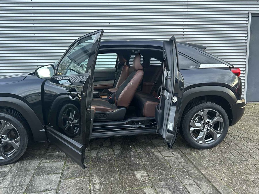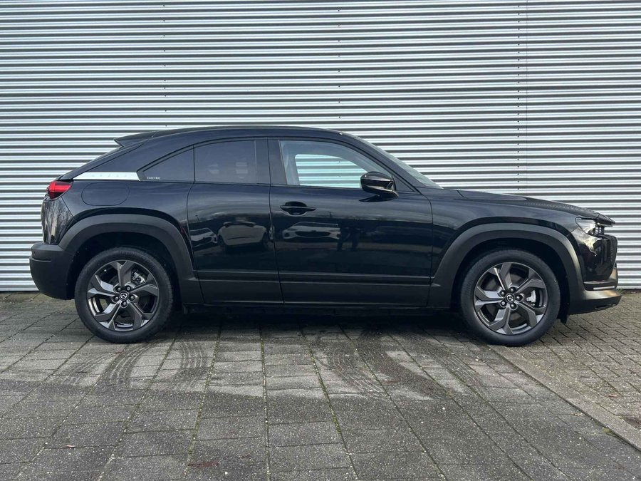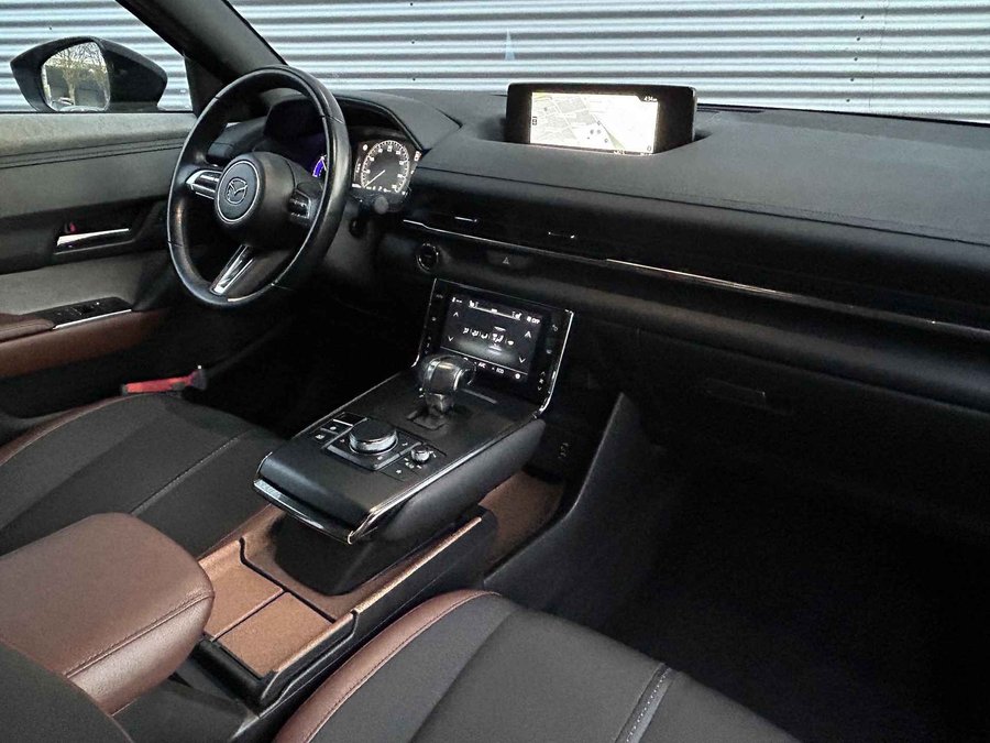 De vormgeving van deze Mazda MX-30 is geoptimaliseerd voor een optimale actieradius. Zo haalt u maximaal rijplezier uit elke kilometer. Wat een rijervaring, die elektromotor. Forse actieradius, nul uitstoot en heerlijk pittig rijgedrag! Deze Mazda MX-30 heeft verwarmbare voorstoelen, voor zowel bestuurder als bijrijder. Hoe koud het buiten ook is, het verwarmbare stuurwiel brengt uw handen en vingers snel weer op temperatuur. Verder is de Mazda uitgerust met: schuif- en kanteldak, 18 inch lichtmetalen velgen, LED koplampen, extra getint glas, in delen neerklapbare achterbank en verstelbare lendensteunen. Kom maar, kom maar, kom maar... ho! Prettig hoor, zo'n achteruitrijcamera. Met adaptive cruise control houdt de auto zelfstandig afstand tot uw voorligger. Een veiligheidsverhogende optie waarmee u comfortabel onderweg bent. De conditie van deze auto is 24/7 inzichtelijk dankzij Connected Services. Het high performance audiosysteem staat garant voor een levendige en krachtige muziekweergave. Elke weg is een bekende weg voor het aanwezige navigatiesysteem. Wat u ook in deze auto kunt vinden zijn electronic climate control, DAB ontvangst, regensensor, keyless entry, automatisch dimmende binnenspiegel en centrale deurvergrendeling met afstandsbediening. Deze Mazda biedt u niet alleen comfort en rijplezier, maar ook veiligheid. Actieve veiligheidssystemen houden voor u de weg in de gaten en reageren op onvoorziene situaties voordat u dat kunt. Dashboardinfo checken zonder uw ogen van de weg te halen? Dat kan met de head-up display. In het instrumentarium kunt u bovendien de verkeersborden zien die u onderweg tegenkomt. Zo helpt deze Mazda u om veiliger te rijden. Mooi binnen de lijnen van de rijstrook blijven? Het Lane-keeping systeem helpt altijd een handje. De veiligheid van deze auto wordt verder verhoogd door dodehoekdetector detectiesysteem, hill hold functie, brake assist en bandenspanningcontrolesysteem. Met deze fantastische elektrische auto is de toekomst begonnen. Even bellen voor een afspraak en hij staat klaar voor een proefrit!