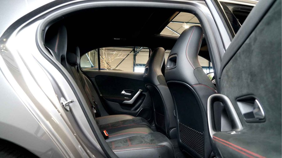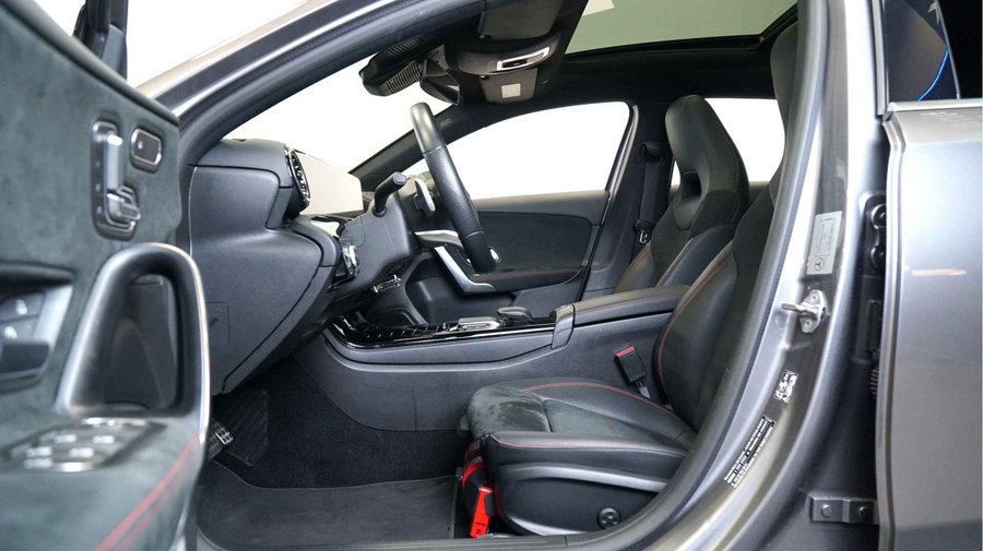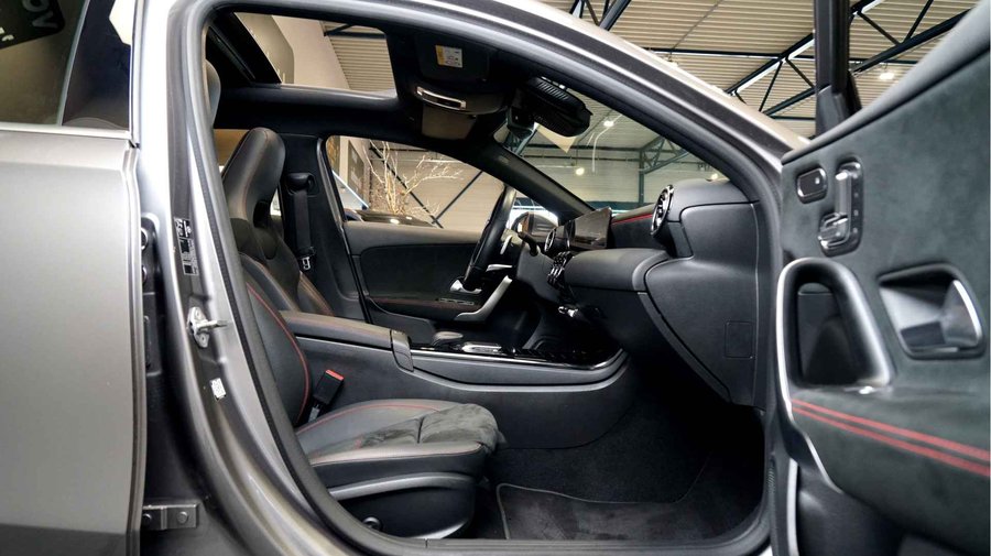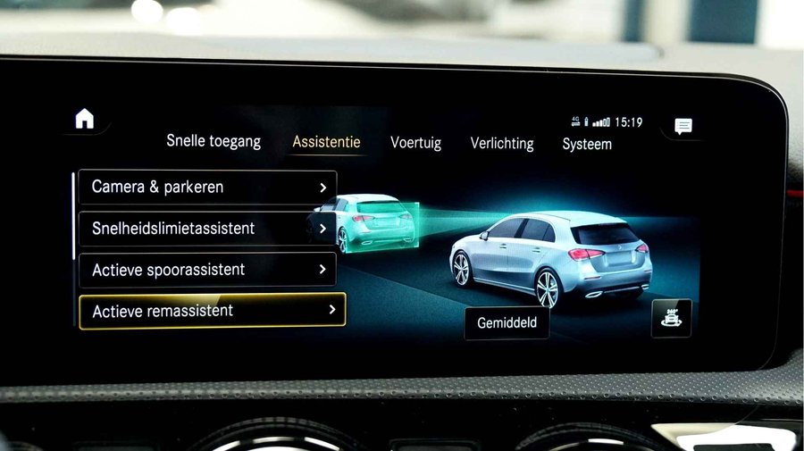 Ruim en economisch, dat is de Mercedes-Benz A-klasse. Met de AMG-styling trekt u op een positieve manier de aandacht. De krachtige benzinemotor van deze auto is gekoppeld aan een 7-traps automatische transmissie met dubbele koppeling. U past de stoelen moeiteloos aan, ze zijn elektrisch in te stellen en hebben bovendien een geheugen. Comfort, licht en het complete gevoel van ruimte wordt verzorgd door het elektrisch bediende panoramadak. Opvallend is de geavanceerde multibeam LED-verlichting met daglichtkwaliteit. De koplampen dimmen automatisch het deel van de lichtstraal waar voor- of tegenliggers in rijden. De overige segmenten blijven aan en verlichten de weg maximaal. In deze Mercedes-Benz profiteert u onder andere ook van: 18 inch lichtmetalen velgen, AMG-styling, dynamisch instelbaar onderstel, zwarte hemelbekleding, dakspoiler en elektrisch inklapbare buitenspiegels.