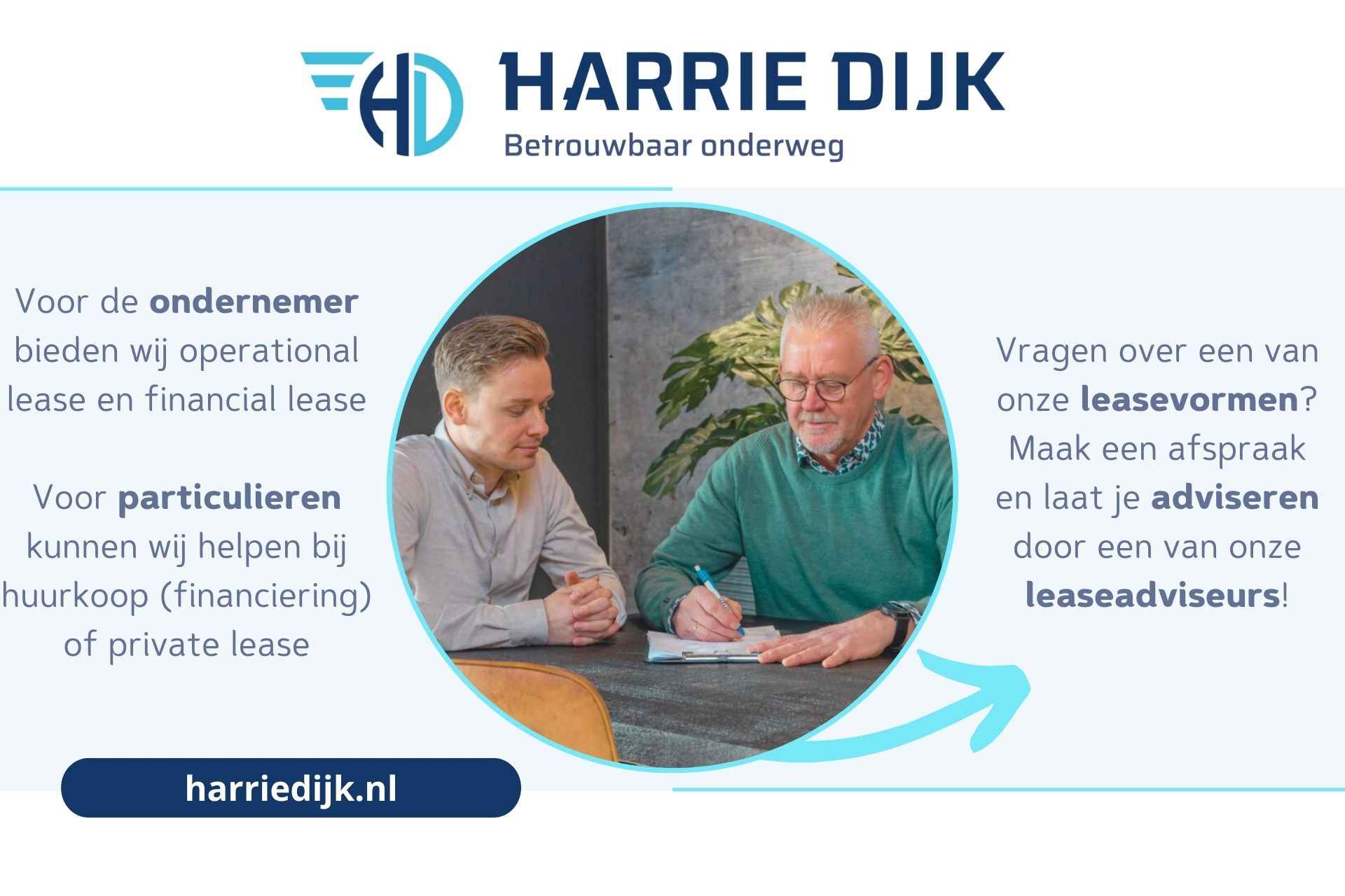 Bent u enthousiast geworden over deze auto? Wij nodigen u van harte uit om bij ons in Hellendoorn om een proefrit te maken. De auto’s van Autobedrijf Harrie Dijk worden tegen de scherpst mogelijk prijs aangeboden. Wij zijn volledig transparant over hetgeen waarvoor u betaald. Ons zekerheidspakket zorgt ervoor dat de auto naar wens wordt afgeleverd. Bij ons heeft u de keuze of u de auto wil laten afleveren met een beurt volgens fabrieksschema en of u gebruik wil maken van 1 jaar BOVAG-garantie. Bij garantie heeft u recht op onze “Dichtbij Garantie Service”. Woont u niet in de gemeente Hellendoorn of omstreken, dan kunt u de auto bij u in de buurt laten repareren. De kosten zijn dan uiteraard voor ons rekening. Wij kunnen u ook helpen bij het volgende: - Inruilauto (online) laten taxeren - Financieringsaanvraag - Private lease aanvraag - Financial lease aanvraag (zakelijk) - Operational lease aanvraag (zakelijk) Wil je wat meer weten over ons bedrijf? Autobedrijf Harrie Dijk is sinds 1992 een full-service autobedrijf met inmiddels een voorraad van ruim 100 auto’s. Het gaat hier vaak om zeer jong gebruikte occasions. Deze auto’s hebben een volledig bekend historie, komen meestal van de eerste eigenaar en zijn dealeronderhouden. Wij zijn een enthousiast familiebedrijf met de service van een dorpsgarage met als doel een jaarlijkse verkoop van 1.000 auto’s. Benieuwd naar hoe onze klanten een aankoop bij ons ervaren? Bekijk dan eens onze onafhankelijke reviews op de website. Hier zijn wij vanzelfsprekend enorm trots op. Liever eerst contact via Whatsapp? Neem dan contact op via: +31 657929380 of gebruik de volgende link: https://wa.me/31657929380 Disclaimer: deze advertentie m.b.t. opties en specificaties van deze auto hebben wij met zorg samengesteld. Voor eventuele fouten willen wij ons excuseren. Hier kunnen echter geen rechten aan worden ontleend.