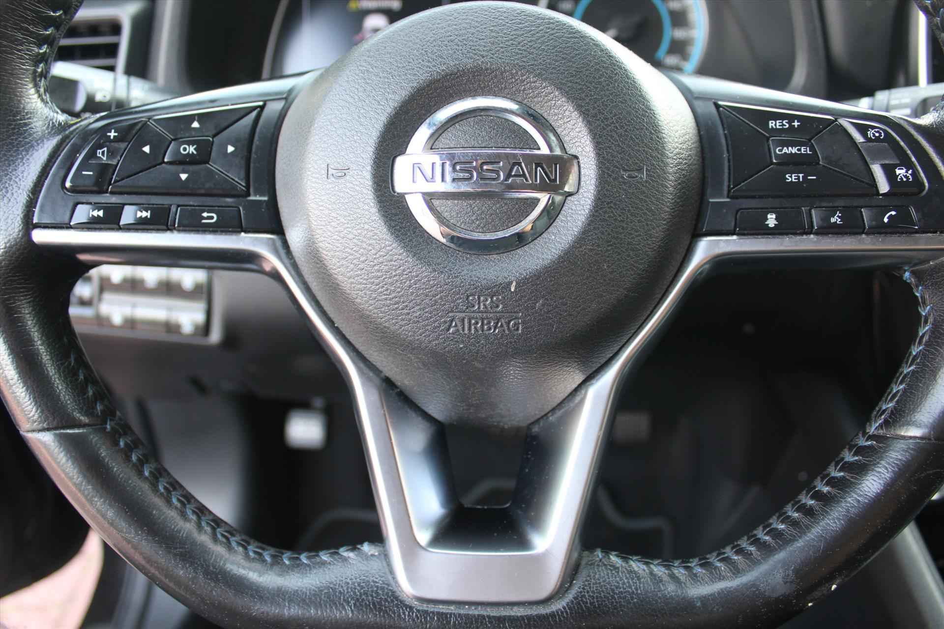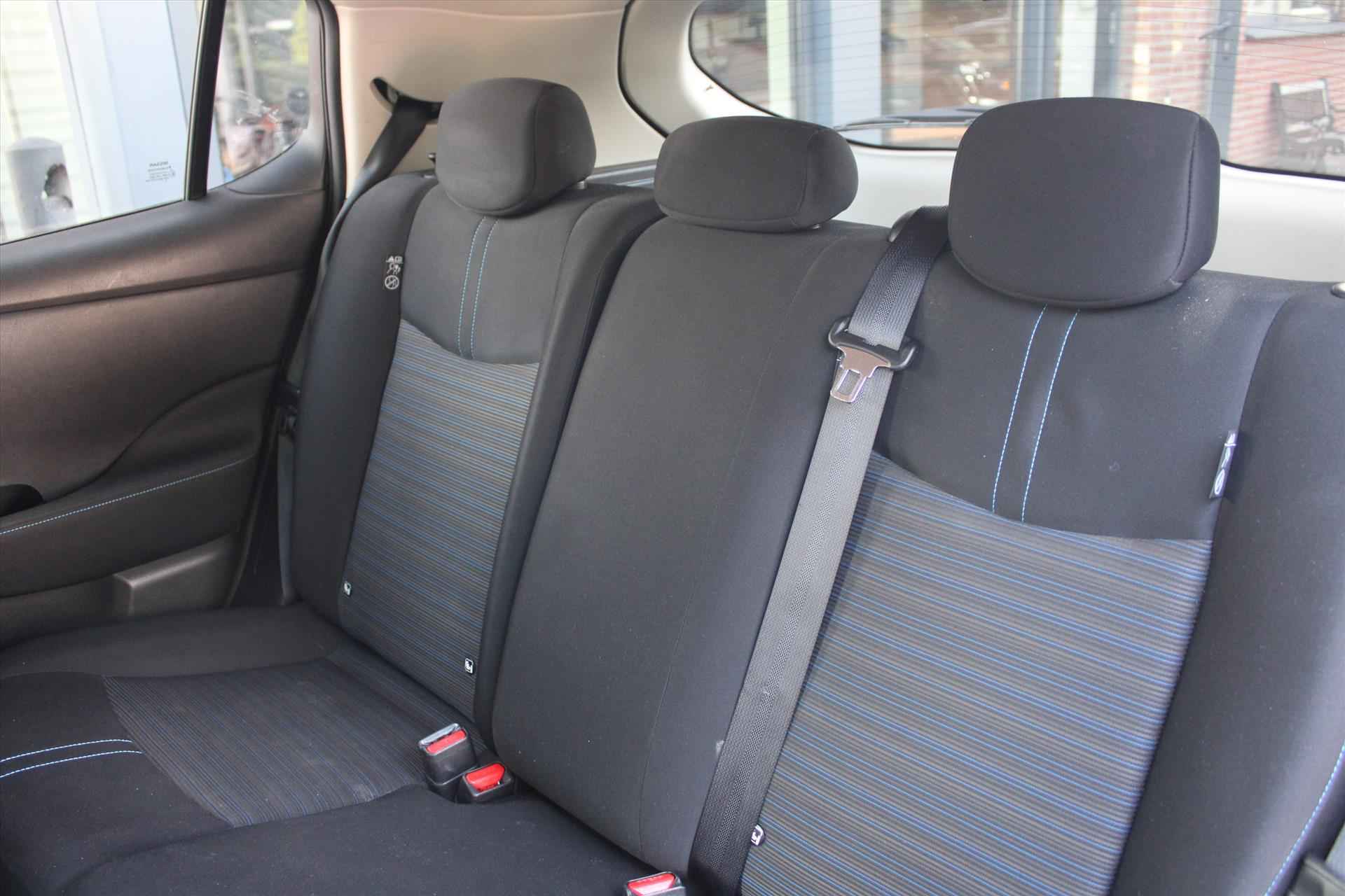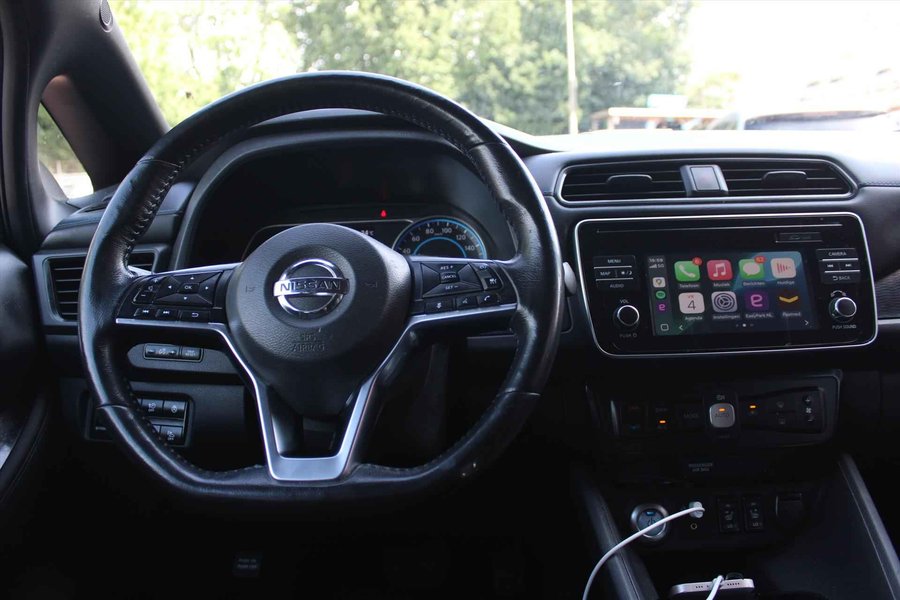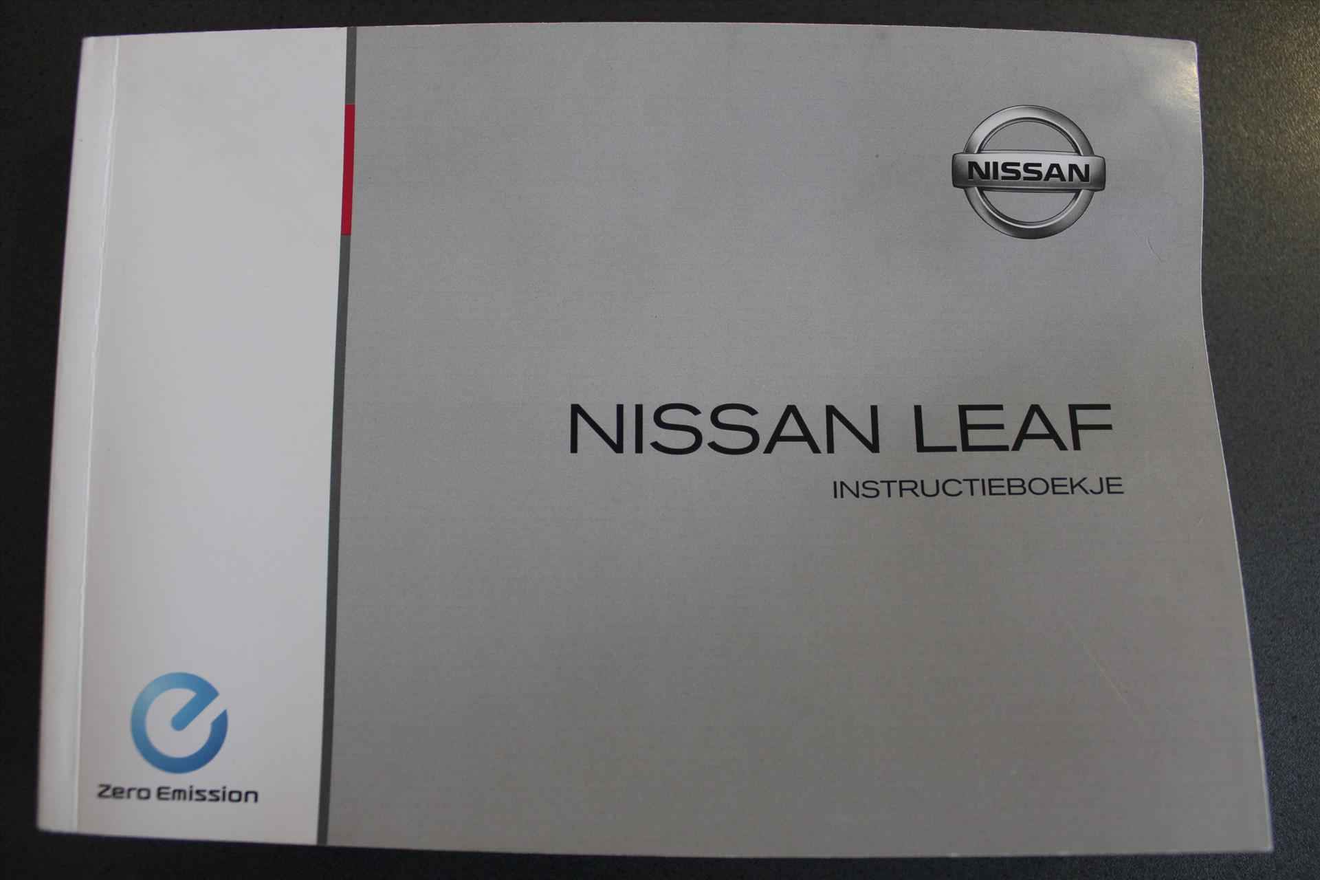 De getoonde prijs is inclusief APK en tenaamstelling, exclusief aanvullende garantie. Voor € 795,- extra (m.u.v. ViaBOVAG.nl) heeft u het aanvullende BOVAG-pakket *, bestaande uit: - 12 maanden BOVAG-garantie - Nieuwe APK - Grote onderhoudsbeurt; slijtage-onderdelen worden indien nodig vervangen - 12 maanden Vakgarage Pechhulp; vanuit huis, Nederland en Europa - 10% korting op volgend regulier onderhoud - Gratis vervangend vervoer in de garantieperiode (* op ViaBOVAG.nl is dit inclusief) Stijlvol design en topprestaties zonder emissies. Deze NISSAN Leaf verbindt elegante lijnen met krachtige elektrische aandrijving zonder schadelijke uitstoot. De elektromotor is stil en schoon. En met een verrassend grote actieradius! Een weldaad voor u en uw bijrijder: deze NISSAN Leaf heeft verwarmbare voorstoelen. Ook achterin heerst een luxe sfeer, vanwege de verwarmde achterbank. Bij de uitrusting van deze auto horen onder meer 17 inch lichtmetalen velgen, LED-dagrijverlichting, donker getint glas achter, in delen neerklapbare achterbank, LED-achterlichten en stoffen bekleding. Adaptive cruise control houdt de ingestelde snelheid vast en houdt automatisch afstand tot uw voorligger. De automatische airconditioning zorgt onder alle omstandigheden voor een prettige temperatuur. Kom-maar-kom-maar...ho! Zo eenvoudig is het voordeel van parkeersensoren. En zo behulpzaam! In deze NISSAN kunt u zich concentreren op het verkeer, terwijl de auto de omgeving voor u in de gaten houdt. Een automatisch inschakelbare verlichting zorgt dat de verlichting aangaat als het donkerder wordt - in tunnels bijvoorbeeld - en de regensensor schakelt de ruitenwissers in als het nodig is. U hoeft er niets aan te doen. Geen capriolen meer als u met armen vol de auto moet openen. De keyless entry heeft u al herkend en ontgrendelt de NISSAN Leaf automatisch. Ook full map audio-navigatie, DAB+ radio, automatisch dimmende binnenspiegel, lederen stuur en 2 isofix-aansluitingen horen tot de voorzieningen op deze auto. Zoals u mag verwachten van deze NISSAN Leaf is hij uitgerust met een reeks aan actieve veiligheidssystemen. Wanneer u onbedoeld buiten uw rijstrook terechtkomt, geeft lane assist een waarschuwingssignaal. In deze NISSAN vinden we verder een traffic sign recognition, dodehoekdetectie, ESP met ebd, abs en hill start functie en bandenspanningcontrolesysteem. Elektrisch rijden is een ervaring op zich. Bel ons voor een afspraak en maak een proefrit!