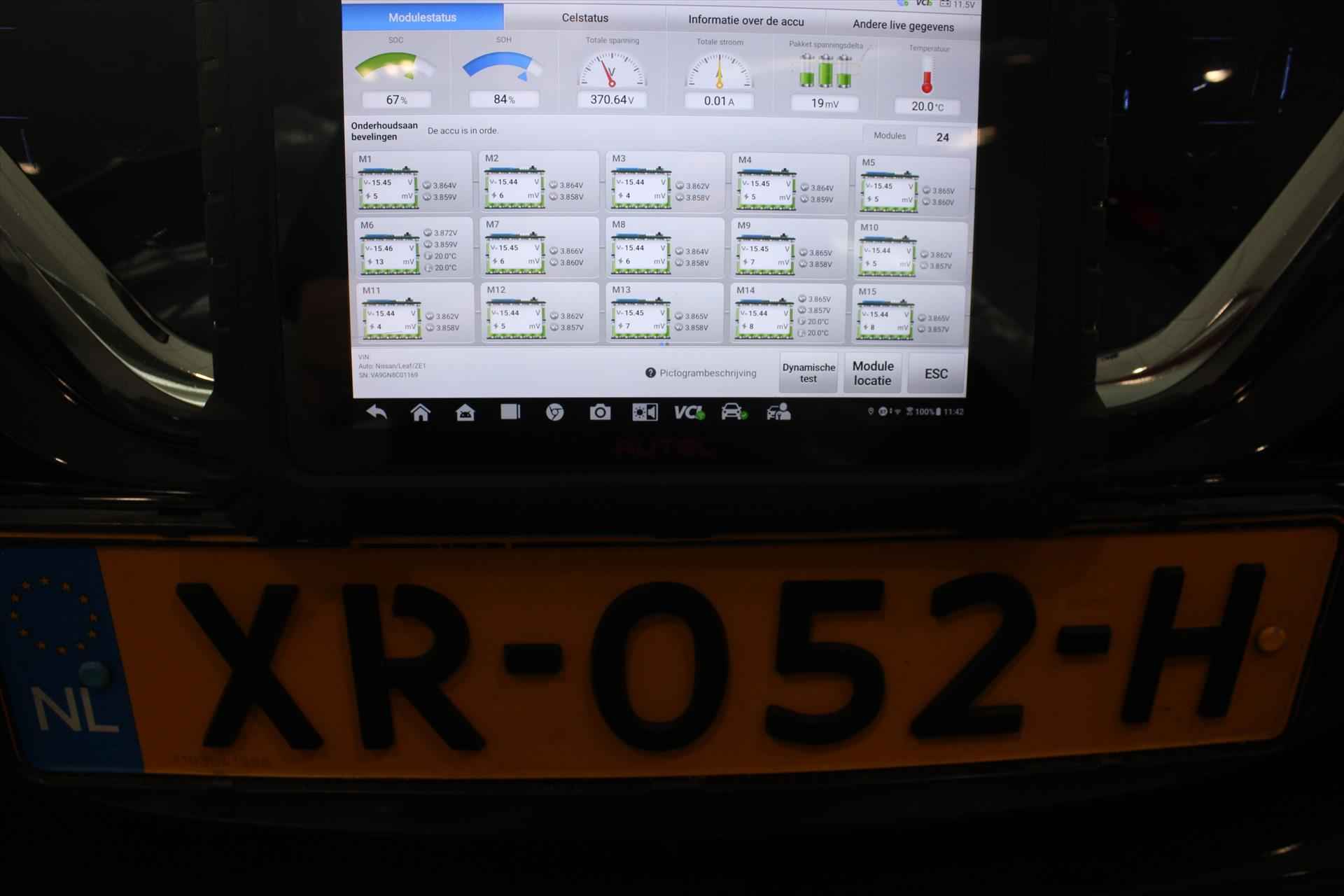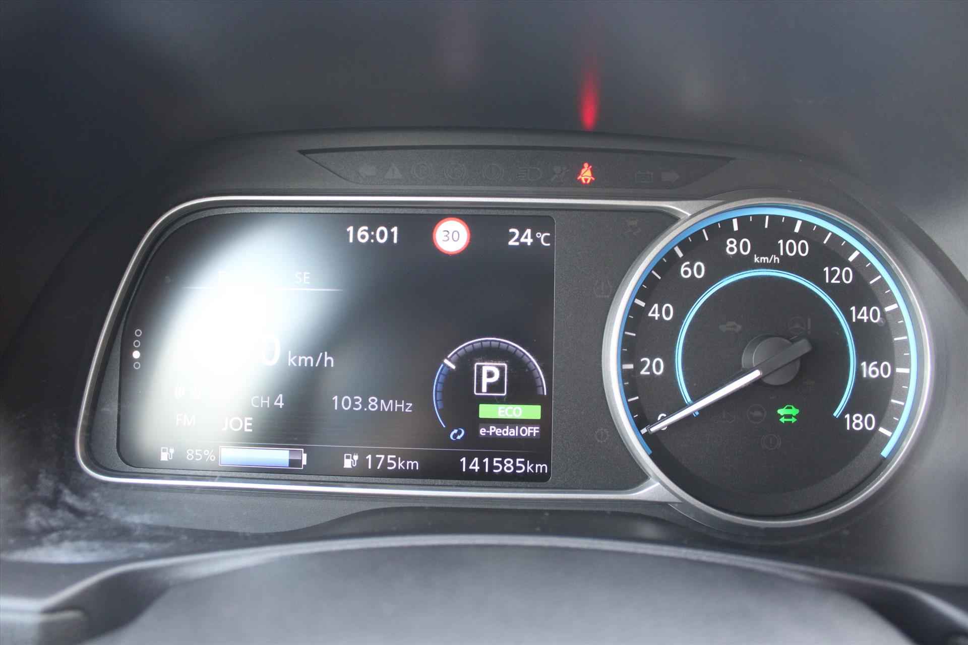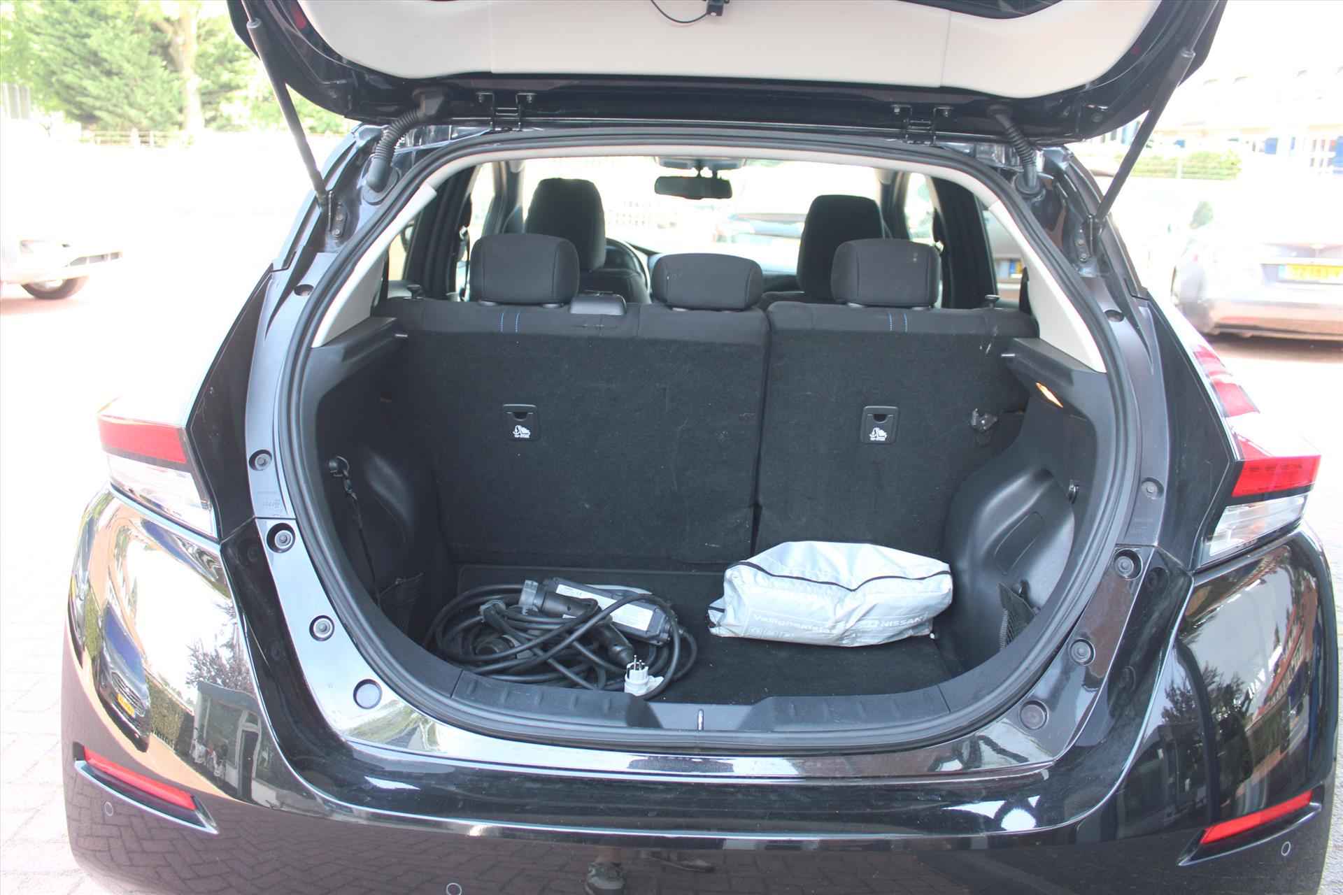 De getoonde prijs is inclusief APK en tenaamstelling, exclusief aanvullende garantie. Voor € 795,- extra (m.u.v. ViaBOVAG.nl) heeft u het aanvullende BOVAG-pakket *, bestaande uit: - 12 maanden BOVAG-garantie - Nieuwe APK - Grote onderhoudsbeurt; slijtage-onderdelen worden indien nodig vervangen - 12 maanden Vakgarage Pechhulp; vanuit huis, Nederland en Europa - 10% korting op volgend regulier onderhoud - Gratis vervangend vervoer in de garantieperiode (* op ViaBOVAG.nl is dit inclusief) Stijlvol design en topprestaties zonder emissies. Deze NISSAN Leaf verbindt elegante lijnen met krachtige elektrische aandrijving zonder schadelijke uitstoot. De elektromotor is stil en schoon. En met een verrassend grote actieradius! Een weldaad voor u en uw bijrijder: deze NISSAN Leaf heeft verwarmbare voorstoelen. Ook achterin heerst een luxe sfeer, vanwege de verwarmde achterbank. Bij de uitrusting van deze auto horen onder meer 17 inch lichtmetalen velgen, LED-dagrijverlichting, donker getint glas achter, in delen neerklapbare achterbank, LED-achterlichten en stoffen bekleding. Adaptive cruise control houdt de ingestelde snelheid vast en houdt automatisch afstand tot uw voorligger. De automatische airconditioning zorgt onder alle omstandigheden voor een prettige temperatuur. Kom-maar-kom-maar...ho! Zo eenvoudig is het voordeel van parkeersensoren. En zo behulpzaam! In deze NISSAN kunt u zich concentreren op het verkeer, terwijl de auto de omgeving voor u in de gaten houdt. Een automatisch inschakelbare verlichting zorgt dat de verlichting aangaat als het donkerder wordt - in tunnels bijvoorbeeld - en de regensensor schakelt de ruitenwissers in als het nodig is. U hoeft er niets aan te doen. Geen capriolen meer als u met armen vol de auto moet openen. De keyless entry heeft u al herkend en ontgrendelt de NISSAN Leaf automatisch. Ook full map audio-navigatie, DAB+ radio, automatisch dimmende binnenspiegel, lederen stuur en 2 isofix-aansluitingen horen tot de voorzieningen op deze auto. Zoals u mag verwachten van deze NISSAN Leaf is hij uitgerust met een reeks aan actieve veiligheidssystemen. Wanneer u onbedoeld buiten uw rijstrook terechtkomt, geeft lane assist een waarschuwingssignaal. In deze NISSAN vinden we verder een traffic sign recognition, dodehoekdetectie, ESP met ebd, abs en hill start functie en bandenspanningcontrolesysteem. Elektrisch rijden is een ervaring op zich. Bel ons voor een afspraak en maak een proefrit!