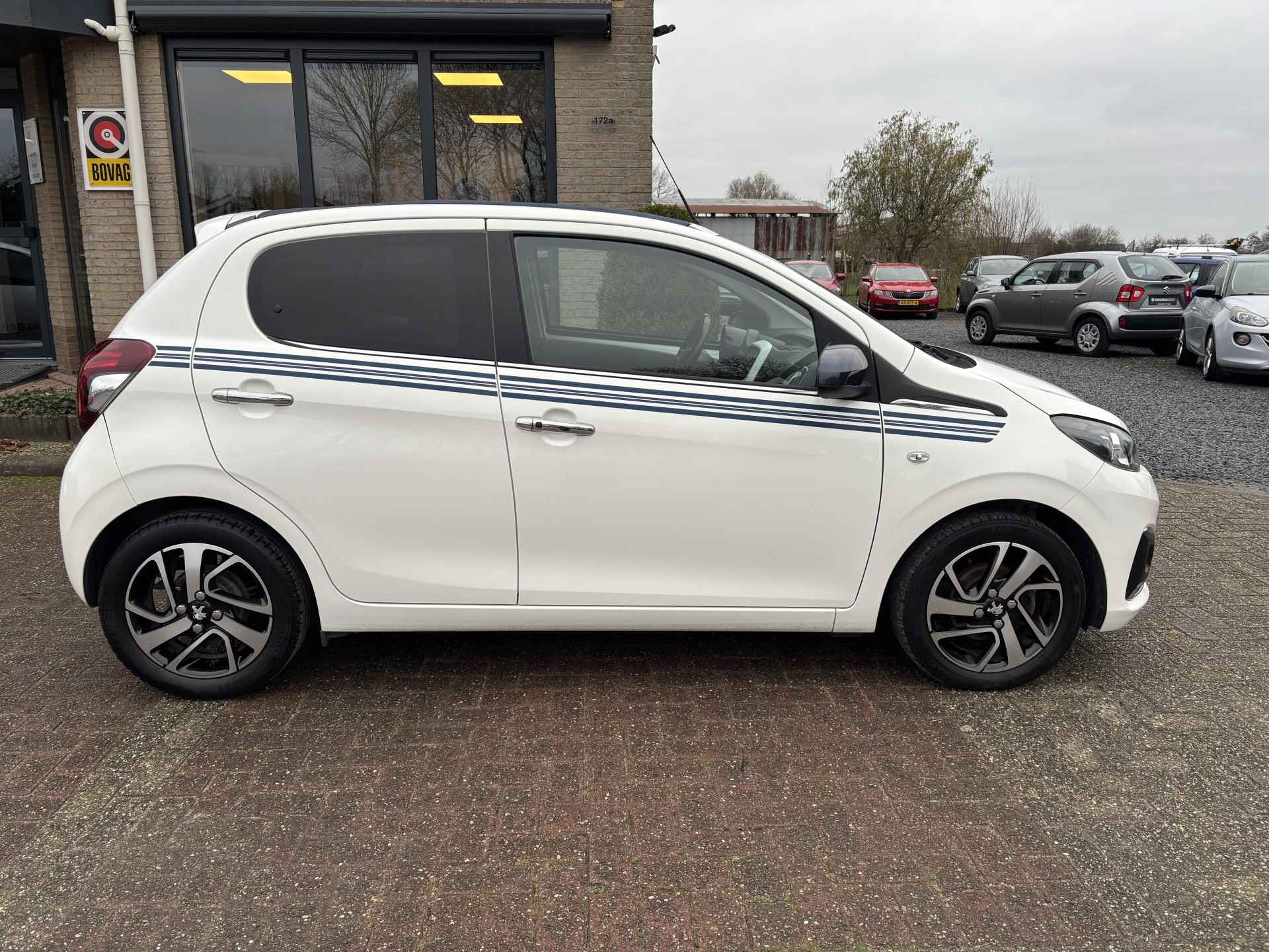 2 sleutels + boekjes aanwezig. Nationale autopas en geldige APK. U kunt deze auto kopen voor de geadverteerde prijs, tevens heeft u keuze uit 2 afleverpakketten (zie het overzicht tussen de foto's). Inruil van uw huidige auto of motor is natuurlijk mogelijk. Bezichtiging en proefrit met afspraak mogelijk. De motorrijtuigenbelasting is +/- € 25,- per maand (afhankelijk van de provincie). Bent u op zoek naar een compacte auto met lage maandlasten, die tegelijkertijd luxe, stijl en rijplezier biedt? Dan is deze Peugeot 108 1.2 GT-Line Cabriolet precies wat u zoekt. De zeldzame GT-Line uitvoering maakt hem extra compleet én sportief, terwijl het grote schuif/vouwdak elke rit verandert in een cabrio-ervaring. Het ruime elektrisch bedienbare cabrio-schuifdak opent ver naar achteren en geeft een heerlijk open gevoel. Perfect voor zomerse ritjes, maar ook bij mooi najaarsweer een feestje. In tegenstelling tot veel stadsauto’s heeft deze 108 de krachtigere 1.2 3-cilinder motor, die verrassend vlot is maar toch heel zuinig blijft. Lage wegenbelasting en een laag verbruik zorgen samen voor voordelige maandlasten – ideaal voor zowel starters als dagelijkse rijders. Als GT-Line is deze 108 niet alleen stoer om te zien, maar ook rijk uitgerust. Denk aan sportieve accenten, meer luxe en handige comfortopties die je in een kleine auto niet vanzelfsprekend vindt. Belangrijkste opties & uitrusting: Airconditioning / Climate control Keyless entry & start Snelheidsbegrenzer Multimedia & navigatie Navigatiesysteem full-map Telefoonintegratie (o.a. MirrorLink / smartphone-mirroring) Bluetooth bellen & audio Achteruitkijkcamera 15" lichtmetalen GT-Line velgen Donkere achterramen Sportieve GT-Line details Elektrisch bedienbaar cabrio-schuif/vouwdak Deze Peugeot 108 1.2 GT-Line Cabriolet biedt een unieke mix van stijl, luxe, lage kosten en rijplezier. Compact in formaat, groot in karakter — en dankzij de cabrio-beleving elke rit bijzonder.