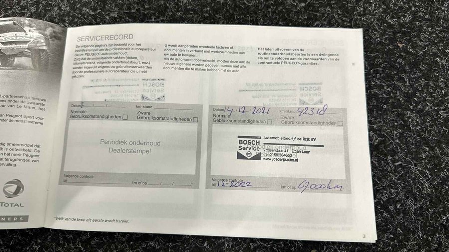 Peugeot 5008 1.2 PureTech GT-Line NAVI CAMERA TREKHAAK PANO - Kenteken: G-393-VP - Merk: Peugeot - Model: 5008 - APK tot: 05-04-2026 - Tellerstand: 119032 KM - Carrosserievorm: SUV - Aantal deuren: 5 - Brandstofsoort: Benzine - Bouwjaar: 2020 - Transmissie: Handgeschakeld - Kleur: zwart - Bekleding: Leder/Stof - Kleur interieur: zwart - Motorinhoud: 1199 cc - Aantal cilinders: 3 - Motorcode: HN05 - Vermogen: 96 kW / 131pk - Ledig gewicht: 1385 kg - Max. trekgewicht: 1280 kg - Aantal zitplaatsen: 7 - Verbruik: 5.1 l/100 km - BTW/Marge: BTW aftrekbaar, de prijs is inclusief BTW - Lengte: 464 cm - Breedte: 184 cm - Aantal sleutels: 2 - Onderhoudshistorie aanwezig: Ja - Motorrijtuigenbelasting: € 216 - 235 per kwartaal - Emissieklasse: Euro 6 Pakket: Keyless pakket - Elektrisch bedienbare achterklep met sensorsturing - Keyless entry - Keyless start Pakket: Navigatie pakket 2 - DAB - Navigatiesysteem full map - Spraakbediening Comfort - Cruise control - Regensensor Exterieur - Achterruitwisser - Buitenspiegel rechts - Buitenspiegels elektrisch inklapbaar - Buitenspiegels elektrisch verstelbaar - Buitenspiegels met verlichting - Centrale vergrendeling met afstandsbediening - Chroom delen exterieur - Dakrails - Dimlichten automatisch - Elektrisch glazen panorama-dak - Extra getint glas achter - Getint glas - Glazen schuifdak - Keyless entry - LED dagrijverlichting - LED koplampen - Lichtmetalen velgen 19" - Metaalkleur - Panoramadak - Park Distance Control - Parkeer assistent - Parkeersensor achter - Parkeersensor voor - Sportvelgen - Trekhaak met afneembare kogel - Zonnescherm zijruiten Infotainment - DAB - Mp3-speler - Multimedia-voorbereiding - Navigatiesysteem full map - Radio - Spraakbediening - Stuur multifunctioneel Interieur - 2 stoelen op derde rij - Achterbank in delen neerklapbaar - Achterstoelen uitneembaar - Airco (automatisch) - Armsteun achter - Armsteun voor - Bestuurdersstoel in hoogte verstelbaar - Binnenspiegel automatisch dimmend - Elektrische ramen achter - Elektrische ramen voor - Kunstlederen/stof bekleding - Middenarmsteun voor - Passagiersstoel in hoogte verstelbaar - Sportstuur - Stuur leder - Stuur verstelbaar - Stuurbekrachtiging snelheidsafhankelijk Overige - Anti Blokkeer Systeem - Anti doorSlip Regeling - Apple Carplay/Android Auto - Autonomous Emergency Braking - Bestuurdersairbag - Bluetooth - Bots waarschuwing systeem - Brake Assist System - Connected services - Dodehoek detectie - Draadloze telefoonlader - Elektrisch bedienbare achterklep met sensorsturing - Elektronisch Stabiliteits Programma - Elektronische remkrachtverdeling - Keyless start - LED mistlampen - Passagiersairbag - Rijstrooksensor met correctie - Volledig digitaal instrumentenpaneel - Zij airbag(s) voor Veiligheid - Achteruitrijcamera - Alarm klasse 1(startblokkering) - Bandenspanningscontrolesysteem - Grootlichtassistent - Hill hold functie - Isofix bevestiging voor kinderzitjes - Verkeersbord detectie - Vermoeidheids herkenning Het elegante design onderstreept de uitstekende rijkwaliteiten van deze puur Franse auto. De aandrijving komt voor rekening van een benzinemotor en een handgeschakelde versnellingsbak. Het daglicht valt in overvloed via het elektrisch bediende panoramadak op het fraaie interieur. De bagageruimte is toegankelijk via een comfortverhogende elektrische achterklep. Supergemakkelijk brengt u de kids naar de uitwedstrijd of een feestje (lekker hoor, die derde zitrij!). In deze auto profiteert u onder andere ook van: 19 inch lichtmetalen velgen, LED koplampen, aluminium dakrailing, elektrisch inklapbare buitenspiegels, in hoogte verstelbare passagiersstoel en donker getint glas achter. Over het digitale dashboard is goed nagedacht. Alle belangrijke functies binnen en buiten in één oogopslag. Geen nekkramp of spiegelwerk meer bij het achteruitrijden: de achteruitrijcamera kijkt en ziet alles! Intelligente spraakbediening herkent uw commando's en voert opdrachten snel en soepel uit. Als u regelmatig met een aanhanger of een fietsendrager op pad bent, is de afneembare trekhaak een praktische extra. Connected Services voegt nog meer comfort en veiligheid toe aan deze auto. De Peugeot is standaard voorzien van: full map navigatiesysteem, automatische airconditioning, draadloos opladen, DAB ontvangst, regensensor en cruise control. De nieuwste veiligheidssystemen komen in deze Peugeot 5008 samen. Verkeersborddetectie herkent tijdelijke en permanente verkeersborden langs en boven de weg. Het Lane-keeping systeem doet precies wat nodig is: waarschuwen en corrigeren bij onbedoelde overschrijding van de rijstrooklijnen. Het forward collision warning-systeem berekent via een sensor de afstand tot het verkeer vóór u en komt in actie als er gevaar bestaat van een botsing. In deze Peugeot vinden we verder een dodehoekdetectie, hill hold functie, brake assist, vermoeidheidsherkenning en bandenspanningcontrolesysteem. We laten u graag een proefrit maken, neemt u contact met ons op? U kunt deze deze auto financieren vanaf €399,00 per maand. Voor meer vragen of informatie kunt u ons altijd bellen mailen of smsen. Kijk ook eens naar onze andere voordelige advertenties. Onze garantiepakketten Instapgarantie (€399,-) Auto's van 10 - 15 jaar oud en tot 200.000 km. Inclusief onderhoudsbeurt. Excellent garantie (€499,-) Auto's tot 10 jaar oud en tot 200.000 km. Inclusief onderhoudsbeurt. Exclusive garantie (€1499,-) Speciaal voor onze exclusives. Auto's tot 10 jaar oud en tot 200.000 km. Inclusief onderhoudsbeurt. Onze advertenties worden met grote zorgvuldigheid op het internet geplaatst. Mocht er onverhoopt toch een fout in staan, dan kan hieraan geen rechten worden ontleend.  Financiering is mogelijk. Whatsapp ons op:  RTO Autoservice Stadskanaal 06-118 666 32 RTO Exclusive 06- 253 700 90 RTO Autoservice Stadskanaal Veenstraat 3 9502EZ Stadskanaal 0599727012 stadskanaal@rtoautoservice.nl www.rtoautoservice.nl