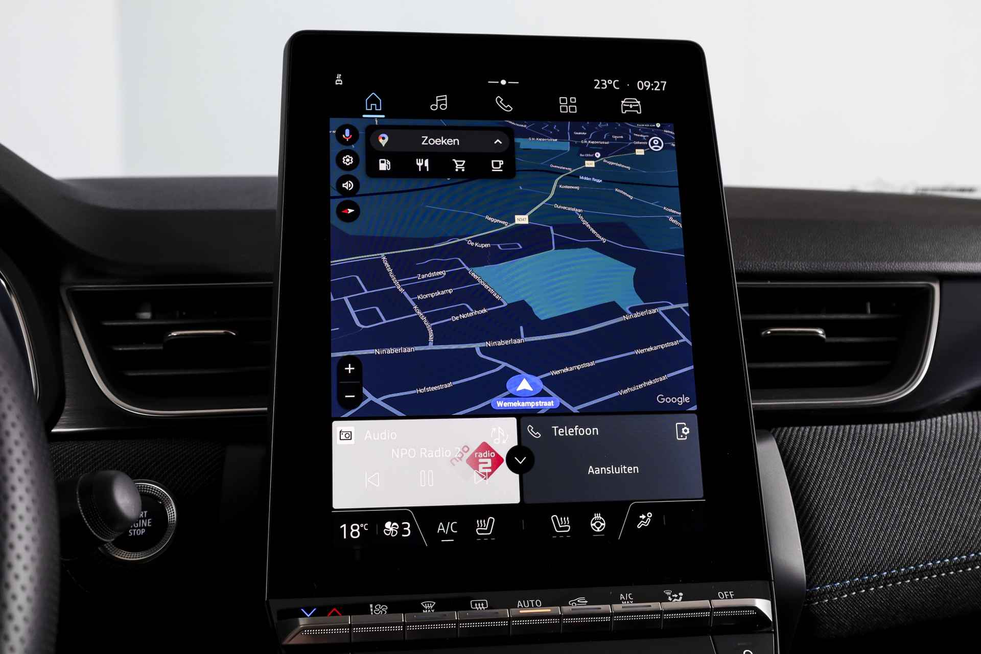 Deze Renault Captur is uitgevoerd in de Esprit Alpine-uitvoering, de meest sportieve variant binnen het Captur-gamma. Met zijn 1.3 mild hybrid benzinemotor en 160 pk in combinatie met een automaat, biedt hij een soepele en krachtige rijervaring met een laag verbruik. Van binnen en buiten ademt deze Captur kwaliteit. De auto is uitgerust met LED koplampen en lichtmetalen velgen 19", wat hem een moderne en sportieve uitstraling geeft. Binnenin zorgt het volledig digitale instrumentenpaneel groot voor een overzichtelijk en strak dashboard. Daarnaast is deze Captur voorzien van een schuif-/kanteldak, waardoor het interieur extra licht aanvoelt en je op warme dagen prettig kunt ventileren. Qua comfort en gebruiksgemak is hij rijk uitgerust. Zo beschikt deze Captur over adaptieve cruise control, elektrisch verstelbare bestuurdersstoel, voorstoelen verwarmd en een verwarmd stuur – prettig tijdens koude dagen. Ook aan connectiviteit is gedacht met Apple CarPlay/Android Auto en het ingebouwde navigatiesysteem werkt op basis van geïntegreerde Google Maps, wat zorgt voor actuele en duidelijk leesbare route-informatie. Bovendien kun je het systeem eenvoudig bedienen via spraakbediening. Parkeren gaat moeiteloos dankzij parkeersensoren voor en achter en de achteruitrijcamera, terwijl de electronic climate control het dagelijks gebruik extra comfortabel maken. Deze Captur combineert sportiviteit met dagelijkse bruikbaarheid. De Esprit Alpine-afwerking onderscheidt zich door zijn dynamische uitstraling en hoogwaardige afwerking – een ideale keuze voor wie een complete, moderne en zuinige crossover zoekt.