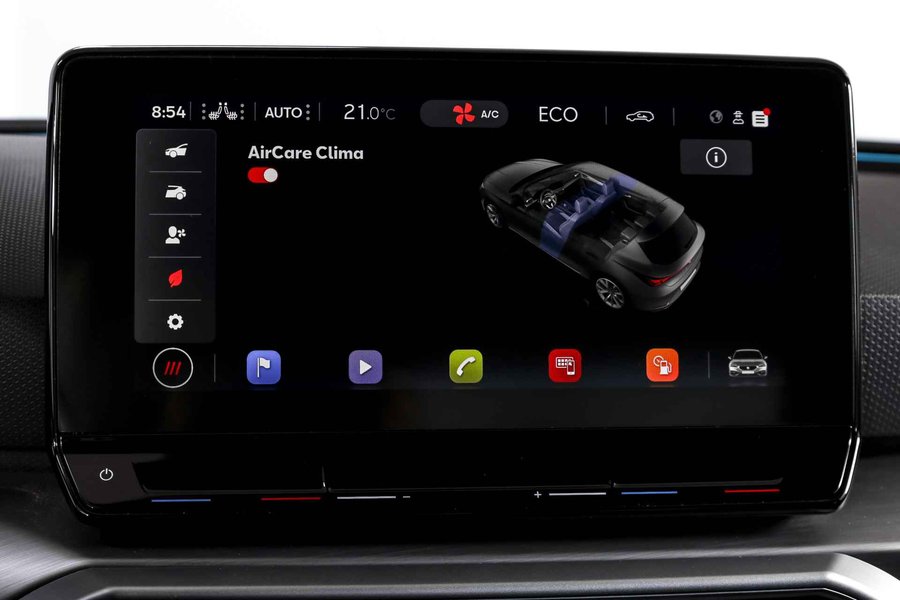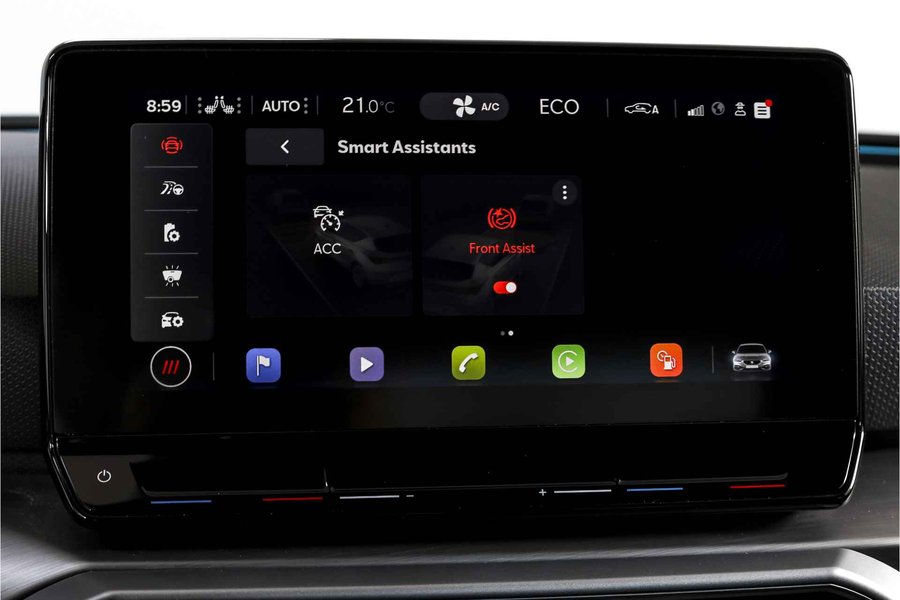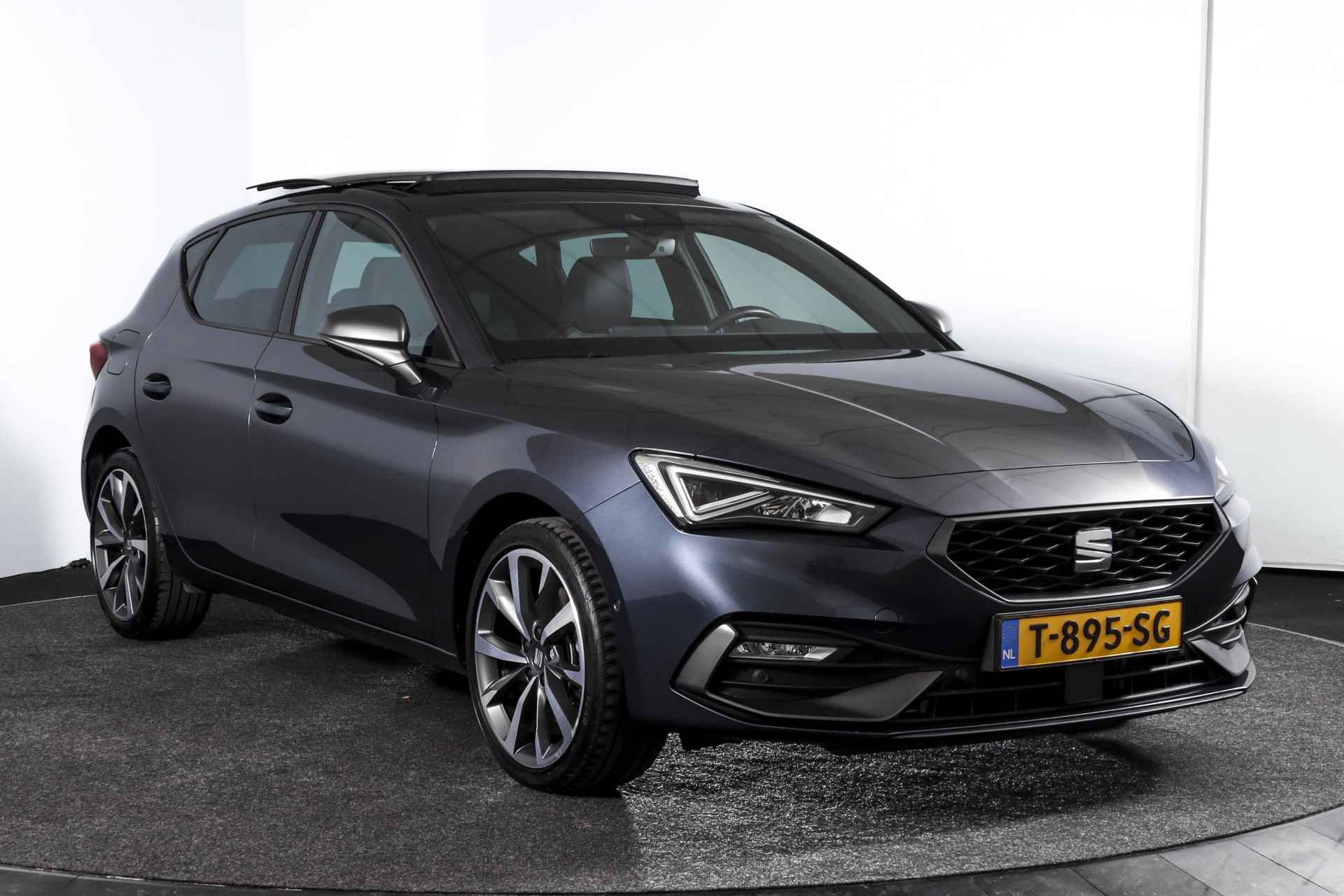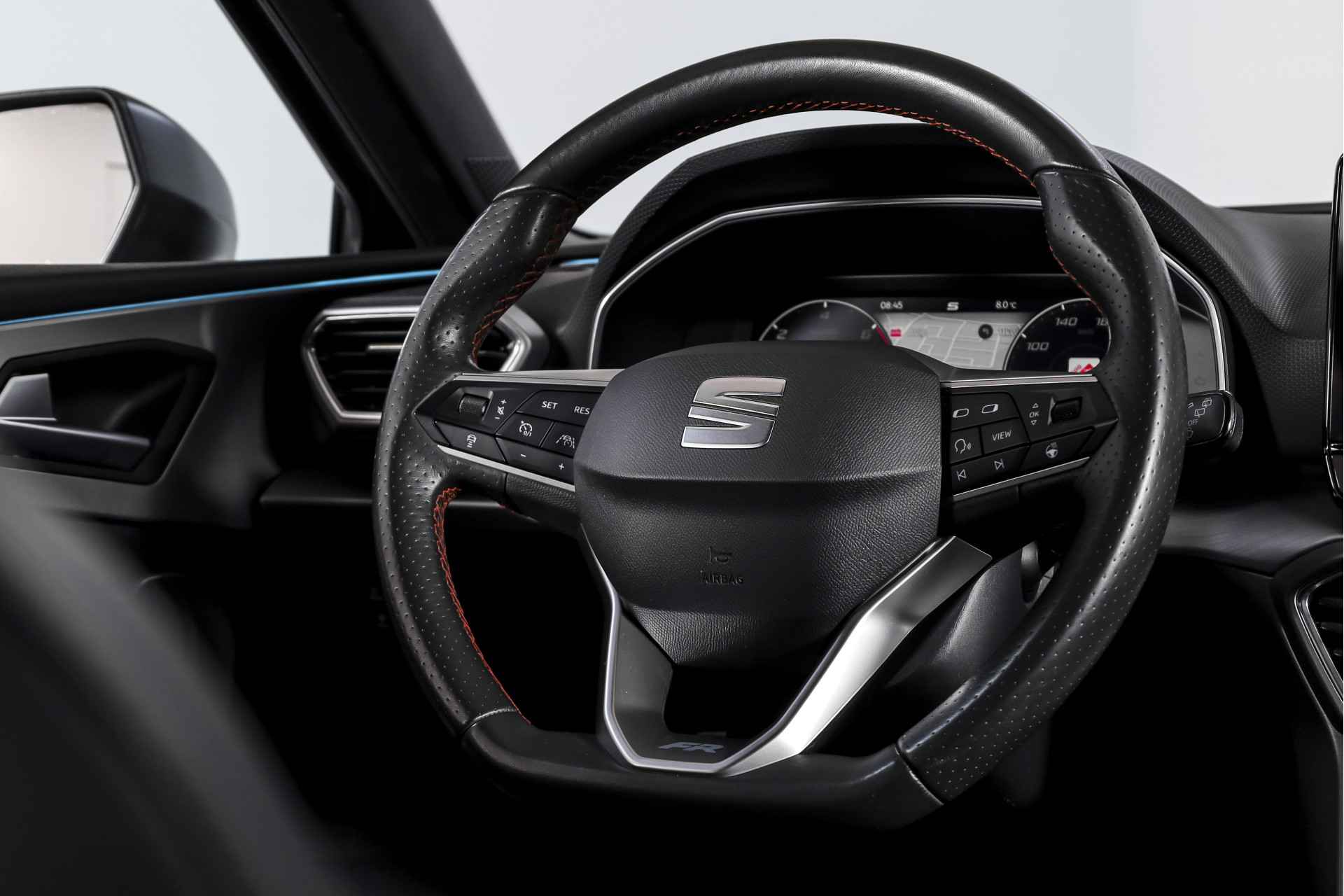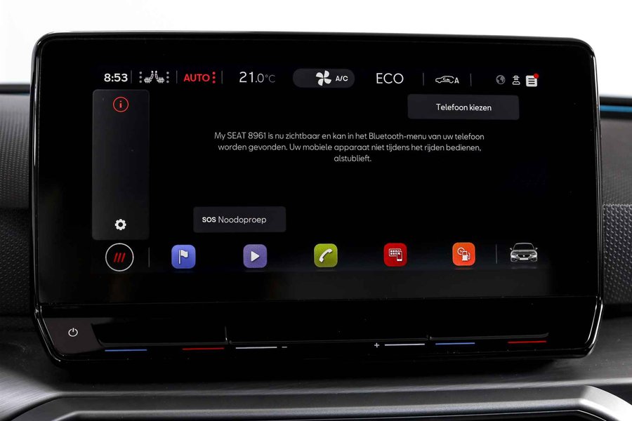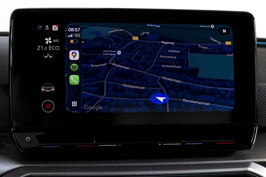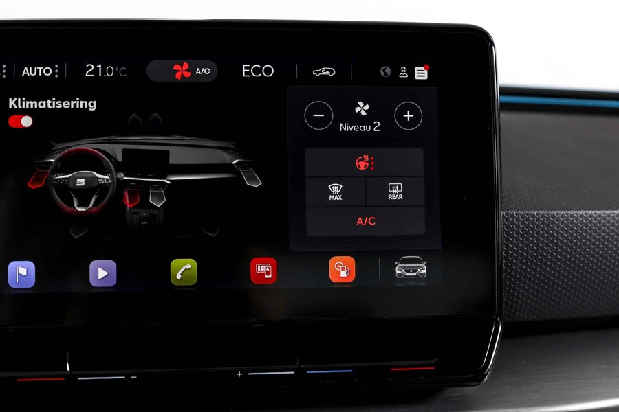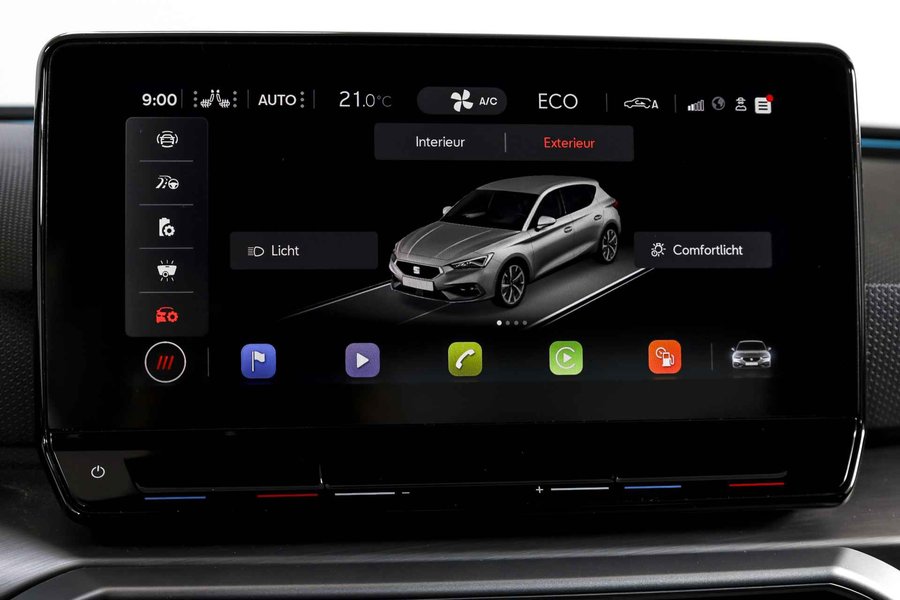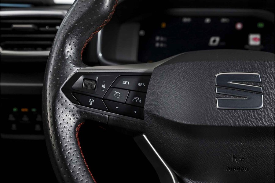 Deze SEAT Leon FR Business Intense uit 2021 combineert sportieve uitstraling met moderne plug-in hybride techniek. Met een systeemvermogen van 204 pk en een automatische transmissie is dit een vlotte, maar ook comfortabele auto voor zowel dagelijks woon-werkverkeer als langere ritten. De kilometerstand bedraagt 84.994 km. Het interieur is overzichtelijk en modern ingericht, met het volledig digitaal instrumentenpaneel als centraal punt. In combinatie met het navigatiesysteem full map en Apple CarPlay/Android Auto zijn bestemmingen en apps altijd binnen handbereik. Dankzij DAB-radio en LED koplampen is ook aan comfort en zicht gedacht, ongeacht het moment van de dag. Qua comfort zit het goed met de airco automatisch, terwijl adaptieve cruise control en vermoeidheidsherkenning bijdragen aan ontspannen en veilige kilometers. Deze Leon is bovendien uitgerust met het Technology Pack, wat betekent dat hij beschikt over een draadloze telefoonlader, een verwarmd stuurwiel en verwarmde voorstoelen – prettig tijdens de koudere maanden. Parkeren en manoeuvreren gaat eenvoudig dankzij de parkeersensoren voor en achter, ondersteund door de achteruitrijcamera en parkeerassistent. Het elektrisch bedienbare glazen schuif-/kanteldak zorgt voor extra licht en een ruimtelijk gevoel in het interieur, terwijl de lichtmetalen velgen 18” de sportieve FR-uitvoering netjes afmaken. Een rijk uitgeruste FR Business Intense, die sportiviteit en comfort op een prettige en evenwichtige manier samenbrengt.