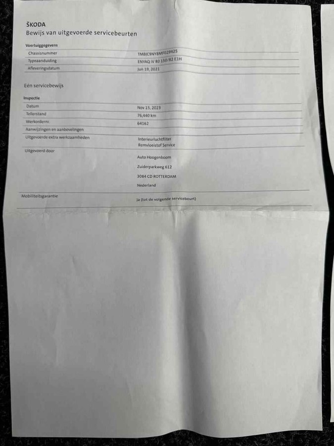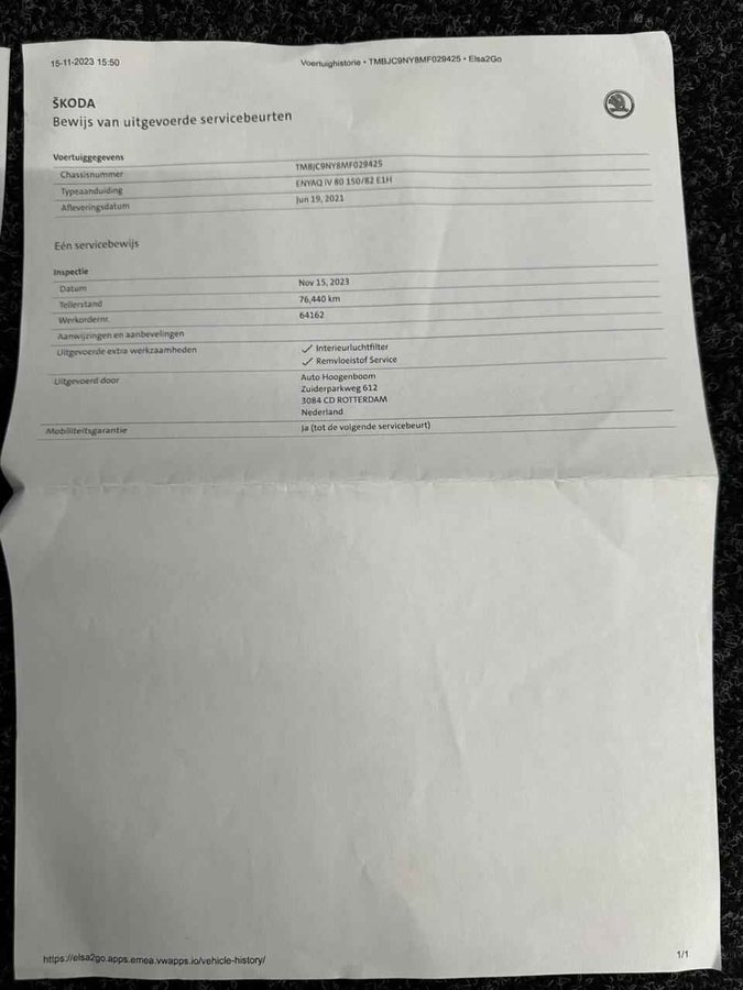 Skoda Enyaq iV 80 TREKHAAK CAMERA WARMTEPOMP SHO 94% CARPLAY NAVI. - Kenteken: L-772-LF - Merk: Skoda - Model: Enyaq iV - APK tot: 19-06-2027 - Tellerstand: 140960 KM - Carrosserievorm: SUV - Aantal deuren: 5 - Brandstofsoort: Elektrisch - Bouwjaar: 2021 - Transmissie: Automaat - Kleur: grijs - Bekleding: Leder/Stof - Kleur interieur: zwart - Motorcode: EBJ - Vermogen: 132 kW / 180pk - Ledig gewicht: 1990 kg - Max. trekgewicht: 1000 kg - Aantal zitplaatsen: 5 - BTW/Marge: BTW aftrekbaar, de prijs is inclusief BTW - Lengte: 465 cm - Breedte: 188 cm - Aantal sleutels: 2 - Onderhoudshistorie aanwezig: Ja - Motorrijtuigenbelasting: € 270 - 296 per kwartaal - Emissieklasse: Euro Z Pakket: Chroom pakket - Chroom delen exterieur Pakket: Climate pakket - Airco separaat achter - Ruitensproeiers/wisserbladen verwarmbaar - Voorstoelen verwarmd Pakket: Microvezel pakket - Microvezel interieurdelen - Microvezel/stof bekleding Comfort - Cruise control - Regensensor Exterieur - Achterruitwisser - Buitenspiegel rechts - Buitenspiegels elektrisch inklapbaar - Buitenspiegels elektrisch verstel- en verwarmbaar - Buitenspiegels elektrisch verstelbaar - Buitenspiegels met verlichting - Buitenspiegels verwarmbaar - Centrale vergrendeling met afstandsbediening - Chroom delen exterieur - Dakrails - Dimlichten automatisch - Getint glas - Keyless entry - LED achterlichten - LED dagrijverlichting - LED koplampen - Lichtmetalen velgen 19" - Metaalkleur - Park Distance Control - Parkeersensor achter - Sportvelgen - Trekhaak - Zonnescherm zijruiten Infotainment - DAB - Multimedia-voorbereiding - Navigatiesysteem full map - Radio - Spraakbediening - Stuur multifunctioneel Interieur - Achterbank in delen neerklapbaar - Achterbank verwarmd - Airco - Airco separaat achter - Armsteun achter - Armsteun voor - Bestuurdersstoel in hoogte verstelbaar - Binnenspiegel automatisch dimmend - Electronic climate control - Elektrische ramen achter - Elektrische ramen voor - Kunstlederen/stof bekleding - Lederen/stof bekleding - Lendesteun(en) verstelbaar - Microvezel bekleding - Microvezel interieurdelen - Microvezel/stof bekleding - Middenarmsteun voor - Passagiersstoel in hoogte verstelbaar - Sportstuur - Stuur verwarmd - Voorstoelen verwarmd Overige - Anti Blokkeer Systeem - Anti doorSlip Regeling - Apple Carplay/Android Auto - Autonomous Emergency Braking - Bestuurdersairbag - Bluetooth - Bots waarschuwing systeem - Connected services - Draadloze telefoonlader - Elektronisch Stabiliteits Programma - Hoofd airbag(s) achter - Hoofd airbag(s) voor - Keyless start - Oplaadmogelijkheid - Passagiersairbag - Schakelpaddles - Sfeerverlichting - Volledig digitaal instrumentenpaneel - Zij airbag(s) voor Veiligheid - Achteruitrijcamera - Alarm klasse 1(startblokkering) - Bandenspanningscontrolesysteem - Isofix bevestiging voor kinderzitjes - Rijstrooksensor - Verkeersbord detectie De Skoda Enyaq iV vertegenwoordigt de nieuwe generatie auto's en verenigt elektrische kwaliteit en duurzaamheid met elkaar. Nooit meer naar de pomp! De elektromotor opladen en rijden maar! De verwarmbare voorstoelen zijn een weldaad voor rug en schouders. Ook de passagiers achterin ervaren het ultieme comfort, dankzij de verwarmde achterbank. Ook 19 inch lichtmetalen velgen, LED koplampen, halflederen bekleding, getint glas, in delen neerklapbare achterbank en LED-achterlichten horen tot de voorzieningen op deze auto. Snelheid, omgevingsinfo, navigatie en communicatie... Het digitale dashboard geeft alles realtime weer. De achteruitrijcamera vergemakkelijkt achteruit inparkeren. U ziet duidelijk wat er achter de auto gebeurt. Een veiligheidsverhogende optie is de ingebouwde spraakbediening. Terwijl u uw ogen op de weg houdt, bedient u de auto met uw stem. Uw smartphone is tegenwoordig de sleutel tot heel veel. Ook voor deze auto. Remote services, noemen we dat. Waar u ook bent, contact houden is een eitje. Je weet altijd waar je moet zijn, dankzij het full map navigatiesysteem. Wat u ook in deze auto kunt vinden zijn electronic climate control, schakelpaddles aan het stuur, draadloos opladen, DAB ontvangst, regensensor en cruise control. In de Skoda Enyaq iV heeft uw veiligheid en die van uw omgeving prioriteit. In het instrumentarium ziet u tijdens de rit ook de belangrijkste verkeersborden aangegeven, die de auto automatisch voor u leest. Ongemerkt buiten de rijstrook raken? Nee hoor, het Lane-keeping systeem waarschuwt en corrigeert. Op een kop-staartbotsing zit niemand te wachten. Daarom is de forward collision warning onderweg constant alert en berekent via een sensor de veilige afstand tot voorliggers. U bent mede dankzij autonoom remsysteem en bandenspanningcontrolesysteem steeds veilig onderweg. Altijd al elektrisch willen rijden? Het moment voor een proefrit is nu! U kunt deze deze auto financieren vanaf €375,00 per maand. Voor meer vragen of informatie kunt u ons altijd bellen mailen of smsen. Kijk ook eens naar onze andere voordelige advertenties. Onze garantie/rijklaar pakketten Instapgarantie (€399,-) Auto's van 10 - 15 jaar oud en tot 175.000 km. Inclusief: 12 maand garantie. Nieuwe APK. Algehele check. Kleine onderhoudsbeurt. Excellent garantie (€499,-) Auto's tot 10 jaar oud en tot 175.000 km. Inclusief: 12 maand garantie. Nieuwe APK. Algehele check. Kleine onderhoudsbeurt. Excellent plus garantie (€699,-) Auto's tot 10 jaar oud en tot 175.000 km. Inclusief: 12 maand garantie. Nieuwe APK. Algehele check. Grote onderhoudsbeurt. Exclusive garantie (€1499,-) Speciaal voor onze exclusives. Auto's tot 10 jaar oud en tot 175.000 km. Inclusief: 12 maand garantie Nieuwe APK. Algehele check Inclusief onderhoudsbeurt. Onze advertenties worden met grote zorgvuldigheid op het internet geplaatst. Mocht er onverhoopt toch een fout in staan, dan kan hieraan geen rechten worden ontleend.  Financiering is mogelijk. Whatsapp nummer voor:  RTO Autoservice Stadskanaal 06-11 86 66 32 Whatsapp nummer voor: RTO Exclusive 06- 25 37 00 90 RTO Autoservice S