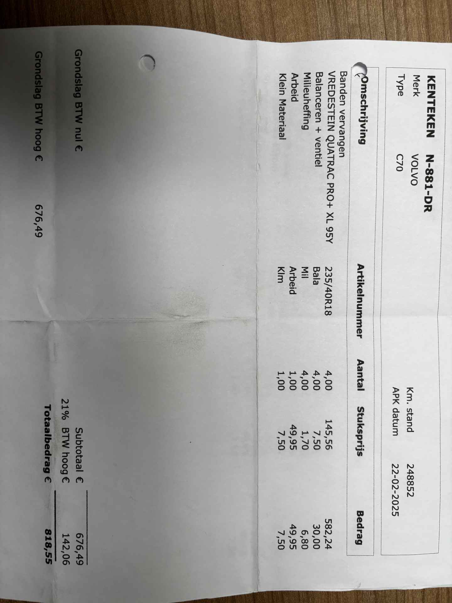 •   Banden periodiek vervangen ­