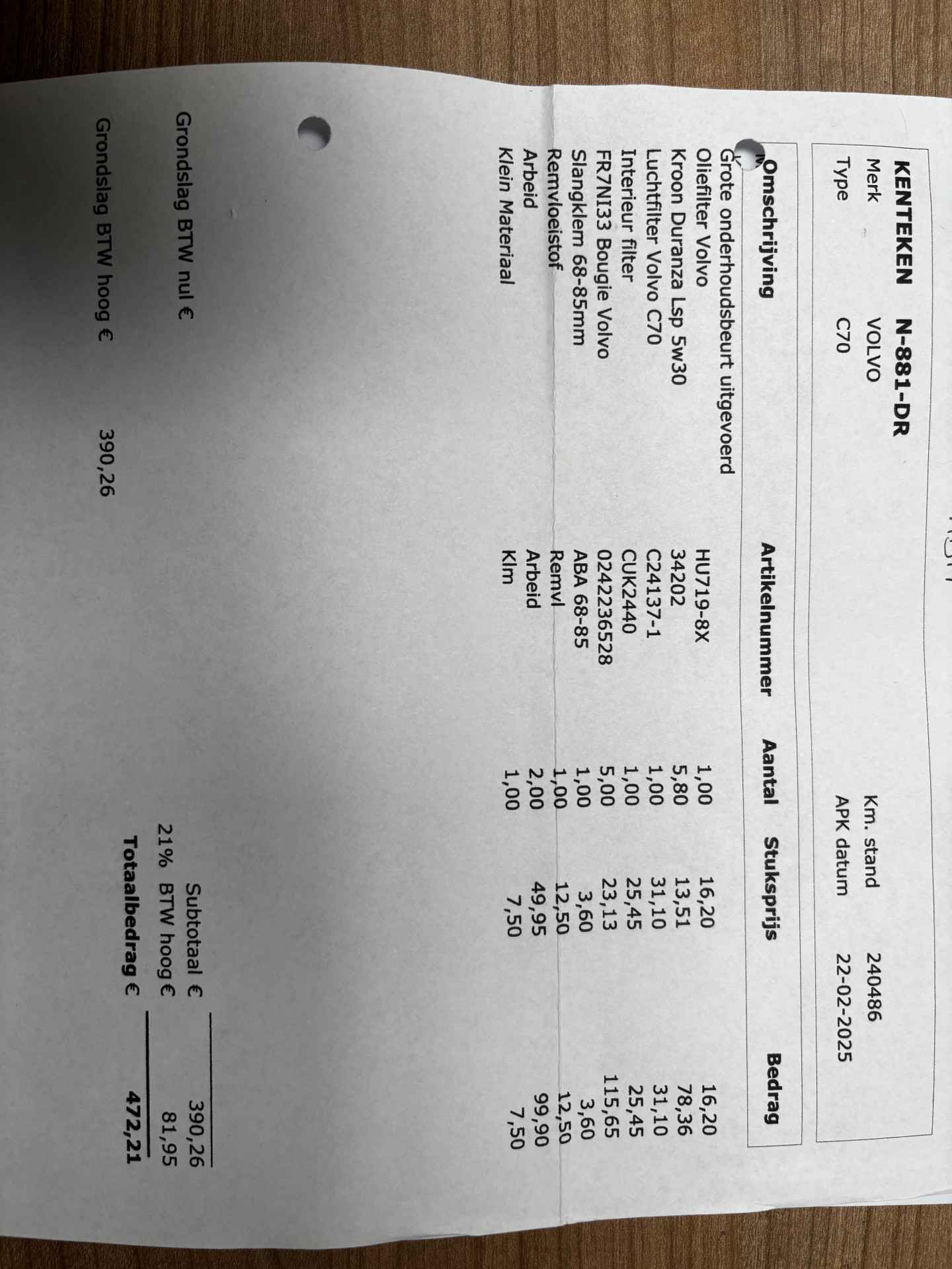 • Soort voertuig